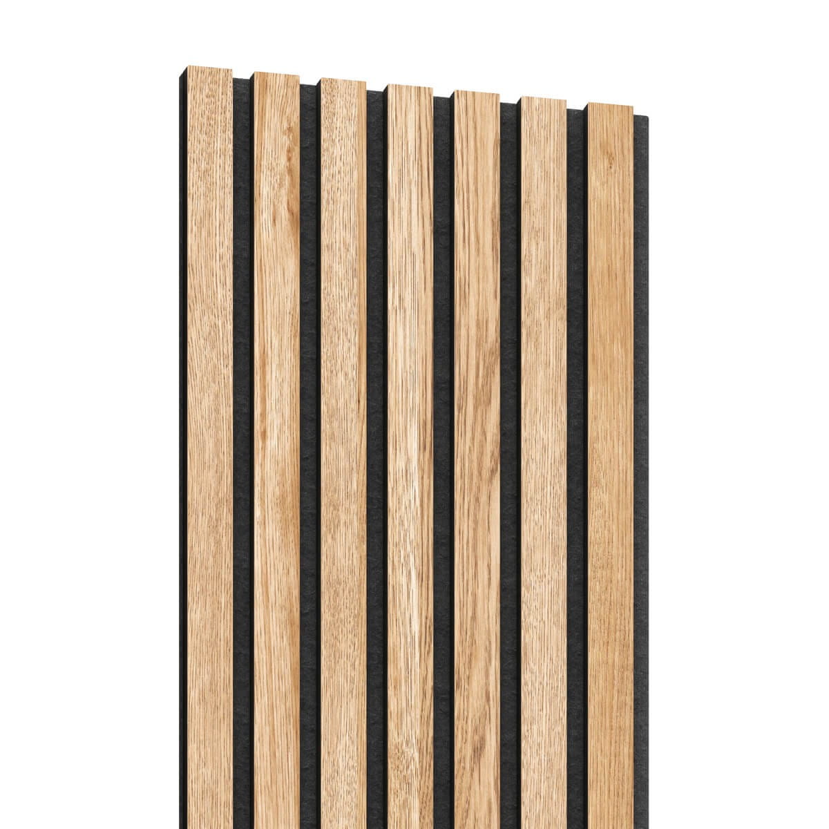 Panel akustyczny Dąb (classic oak) to dekoracyjne lamele wykonane z naturalnego forniru nieolejowanego, zamontowane na czarnym filcu akustycznym o grubości 7 mm. Naturalny dębowy fornir podkreśla autentyczny charakter drewna i wprowadza do wnętrza ciepło oraz ponadczasowy styl.