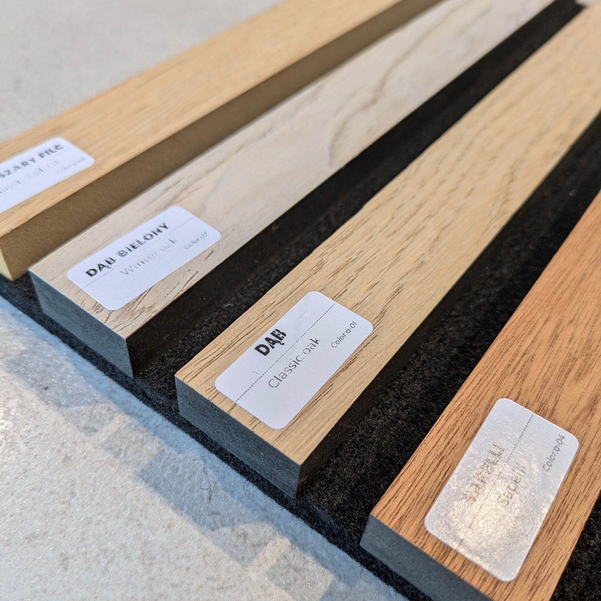 - Lamela osadzona na czarnym filcu akustycznym o grubości 7 mm.