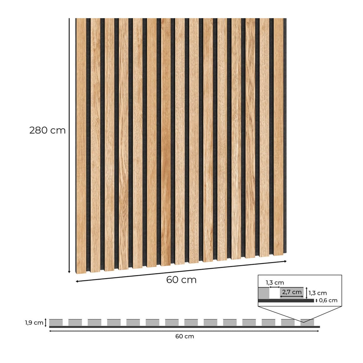 Panele akustyczne z lamelami Dąb klasyczny 60 x 280 cm LEO - lamele na czarnym filcu z naturalnym fornirem