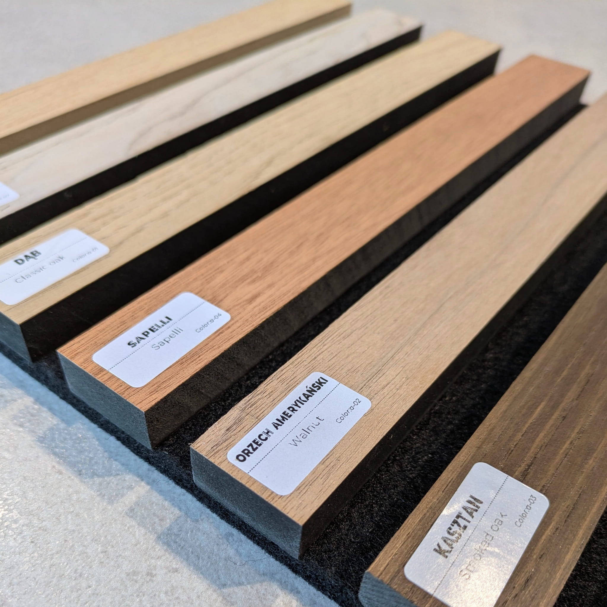 - Lamela osadzona na czarnym filcu akustycznym o grubości 7 mm.