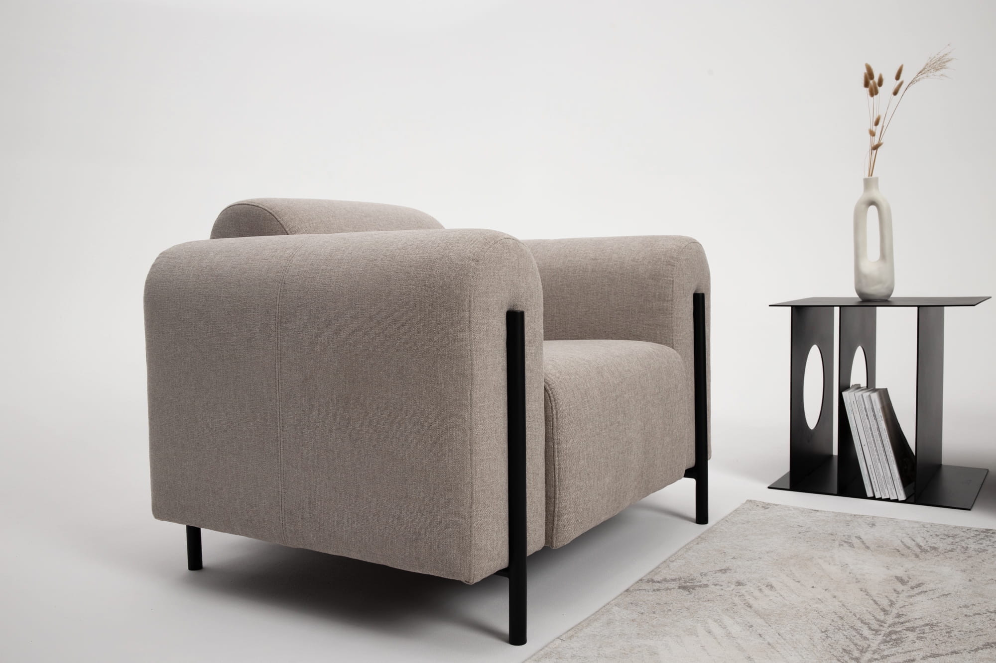 - Fotel Arco łączy wyrazistą formę z komfortem użytkowania.