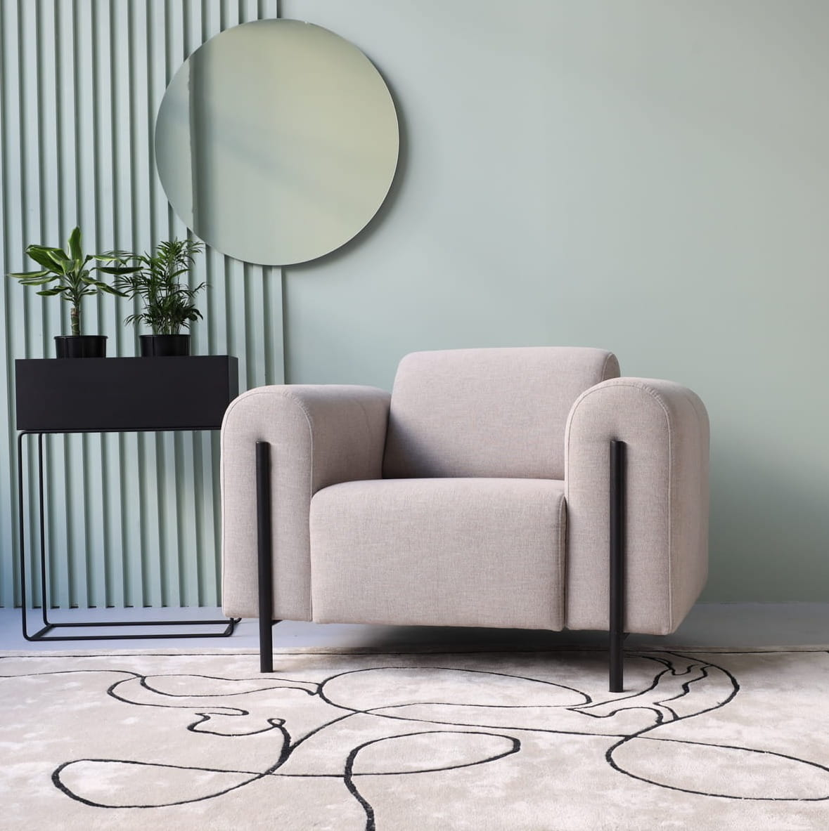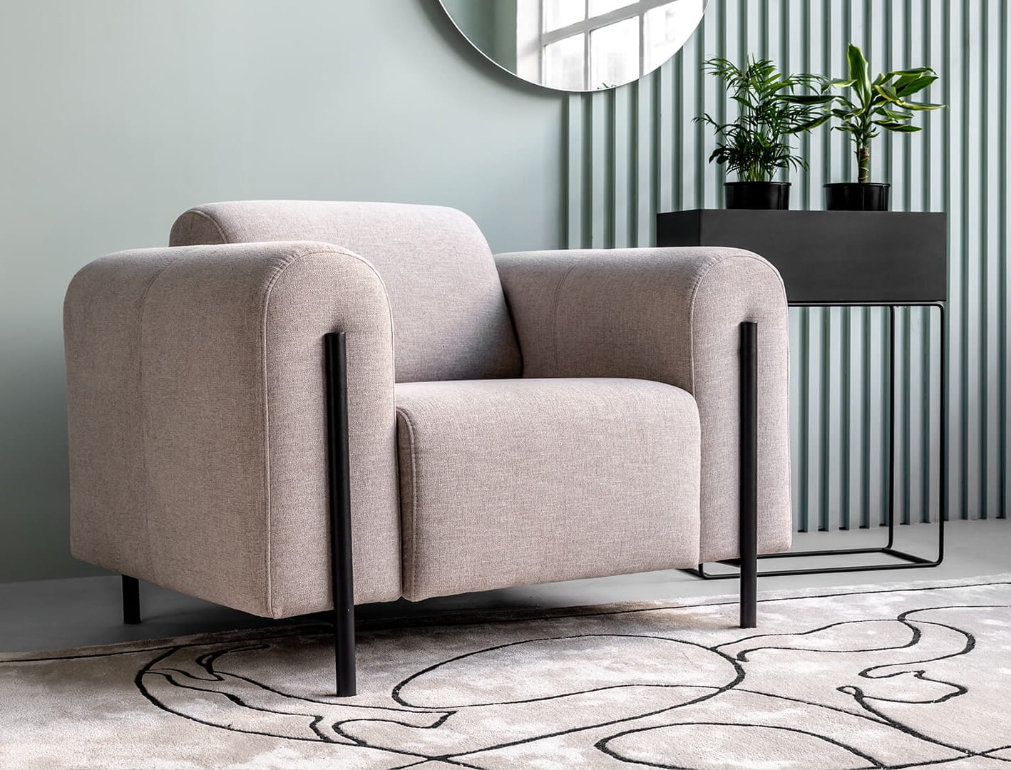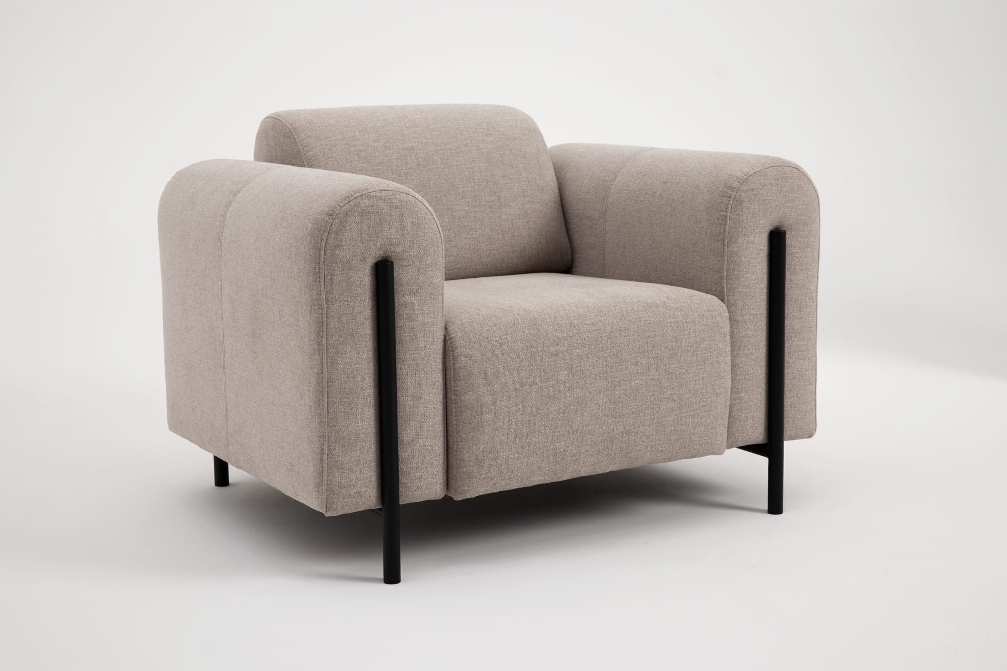 Fotel Arco to kompaktowa, rzeźbiarska forma oparta na miękkich zaokrągleniach i dopracowanych proporcjach. Obłe siedzisko i masywne podłokietniki tworzą wyrazistą, ale elegancką bryłę, która przyciąga uwagę detalem i spokojną linią. Komfortowe siedzisko z pianki HR oraz sprężyn falistych zapewnia wysoki poziom wygody podczas codziennego użytkowania.