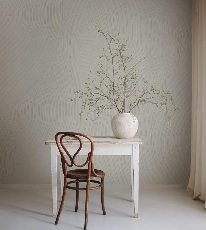 Ta tapeta powstała z ręcznie formowanej gliny, którą następnie przekształcono w wyjątkowy wzór dzięki nowoczesnej technologii druku. To doskonały przykład harmonii między tradycyjnym rzemiosłem a innowacją. Delikatne, organiczne linie mają uspokajający rytm, a naturalna faktura gliny zachęca, by dotknąć powierzchni. Efekt? Niezwykle intrygujący i pełen charakteru design.