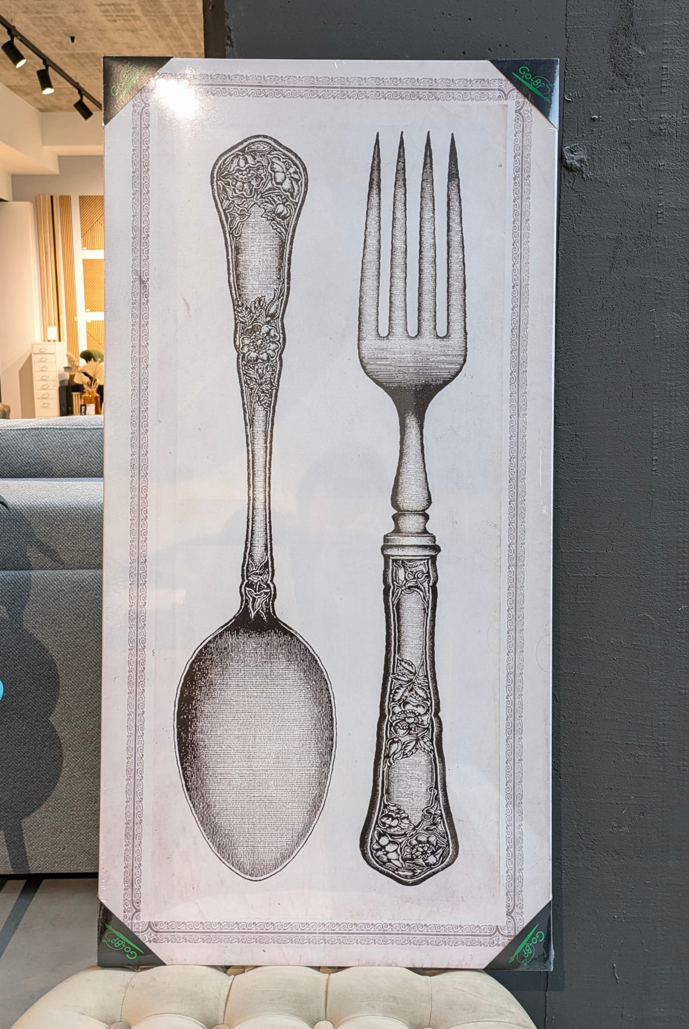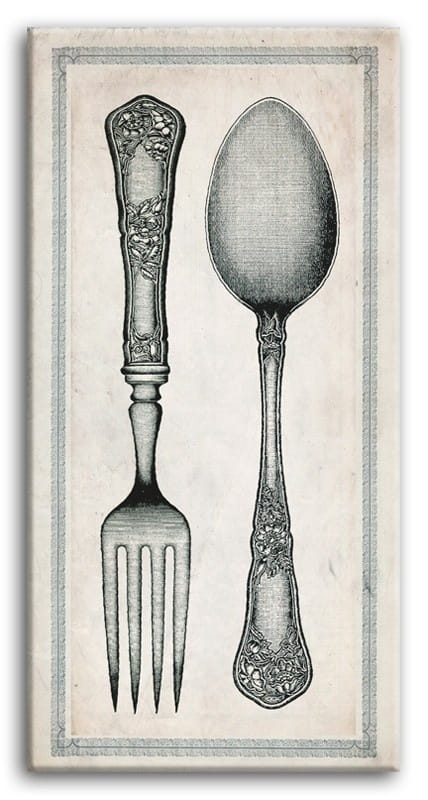 - Motyw klasycznych sztućców - łyżki i widelca w formie graficznej doskonale sprawdzi się we wnętrzach kuchni, jadalni lub restauracji.