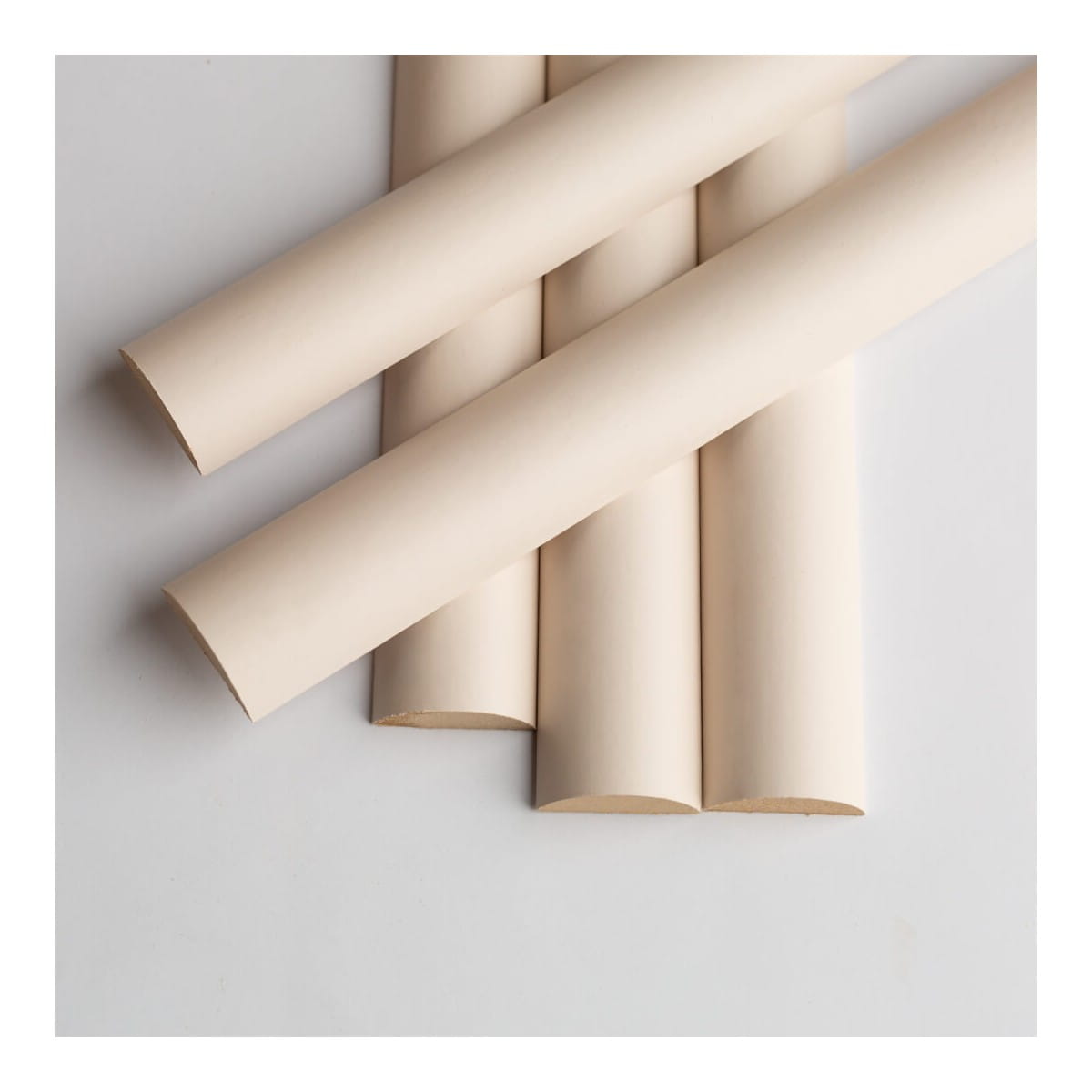 Pojedyncze półokrągłe lamele LEO – półwałki w beżowym / kremowym kolorze to idealny wybór, jeśli chcesz samodzielnie stworzyć dekorację ścienną lub uzupełnić istniejącą aranżację. Owalny profil w formie półwałka nadaje wnętrzu miękkości i elegancji.