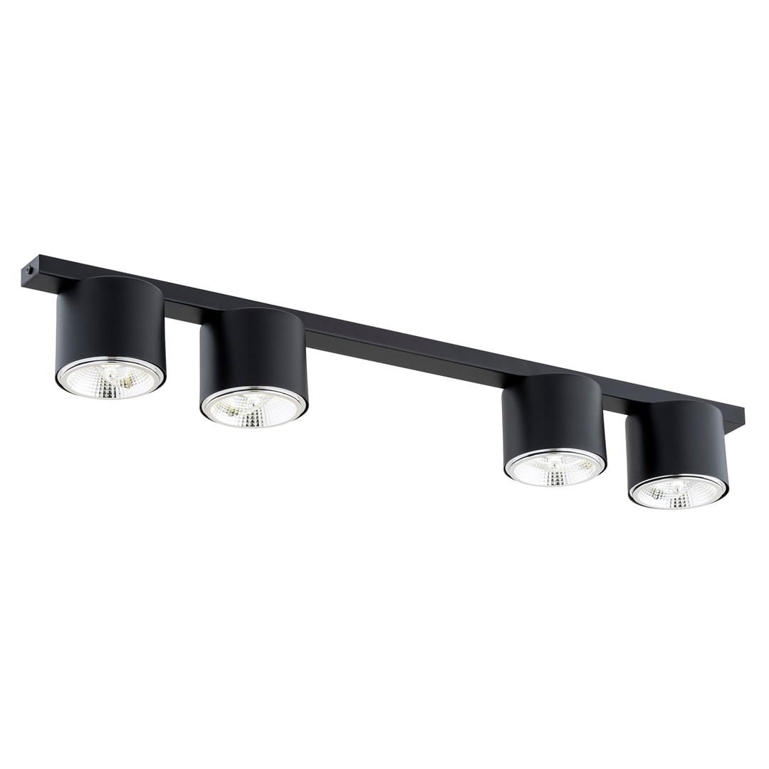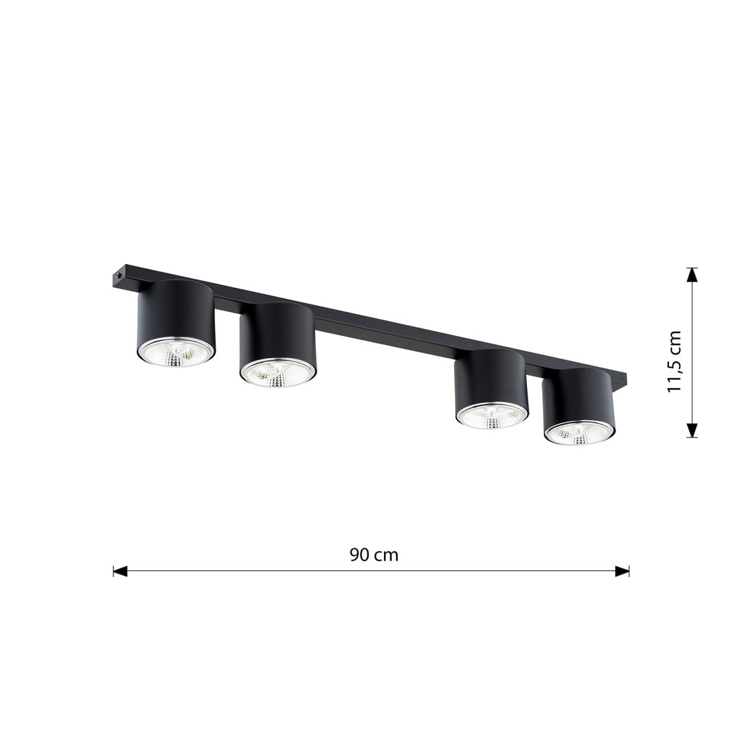- Cztery źródła światła rozmieszczono symetrycznie na dwóch końcach prostej, metalowej listwy.