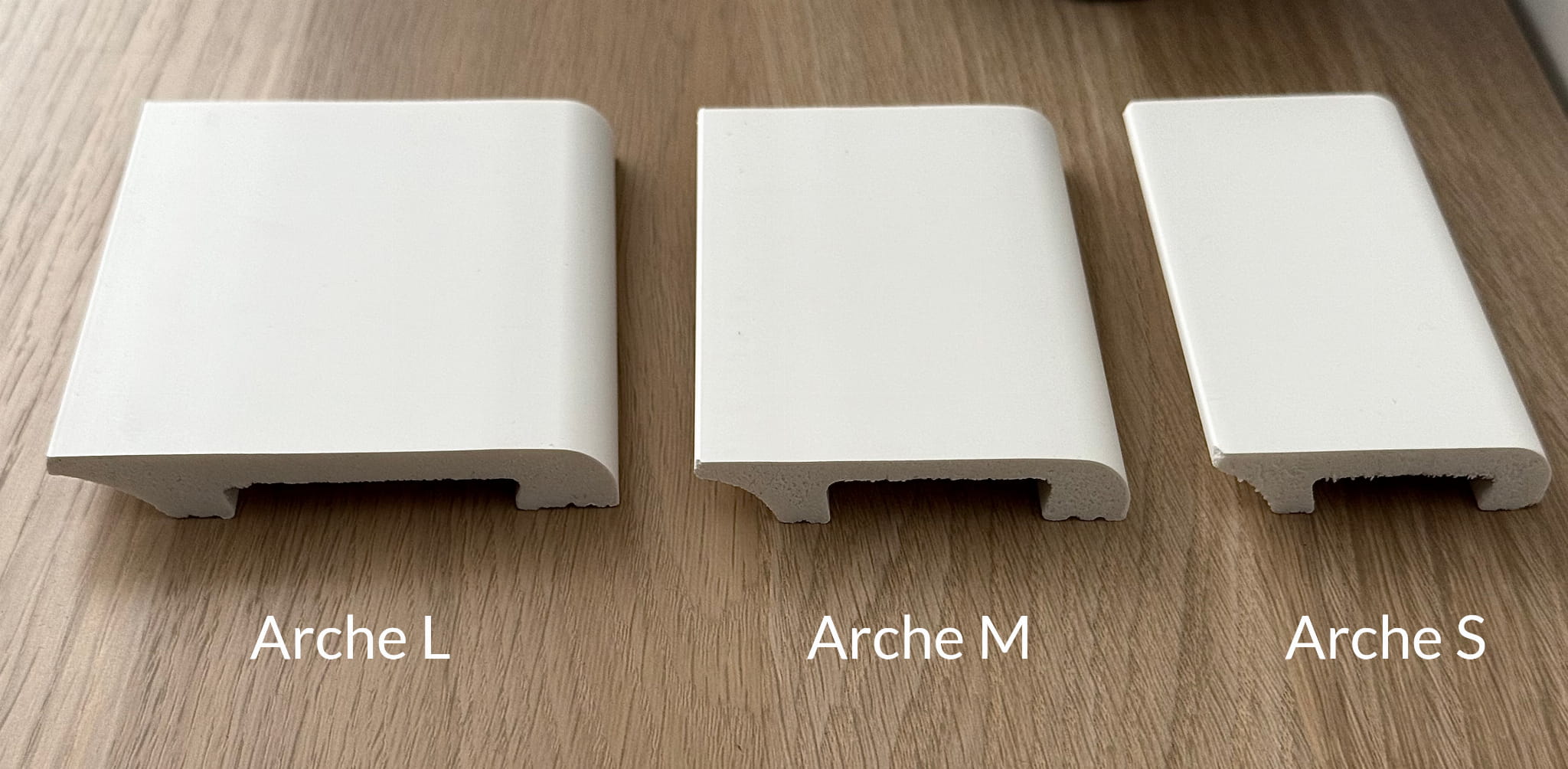 - Listwa przypodłogowa Arche wyróżnia się półokrągłym profilem, który nadaje wnętrzu łagodne, eleganckie wykończenie.