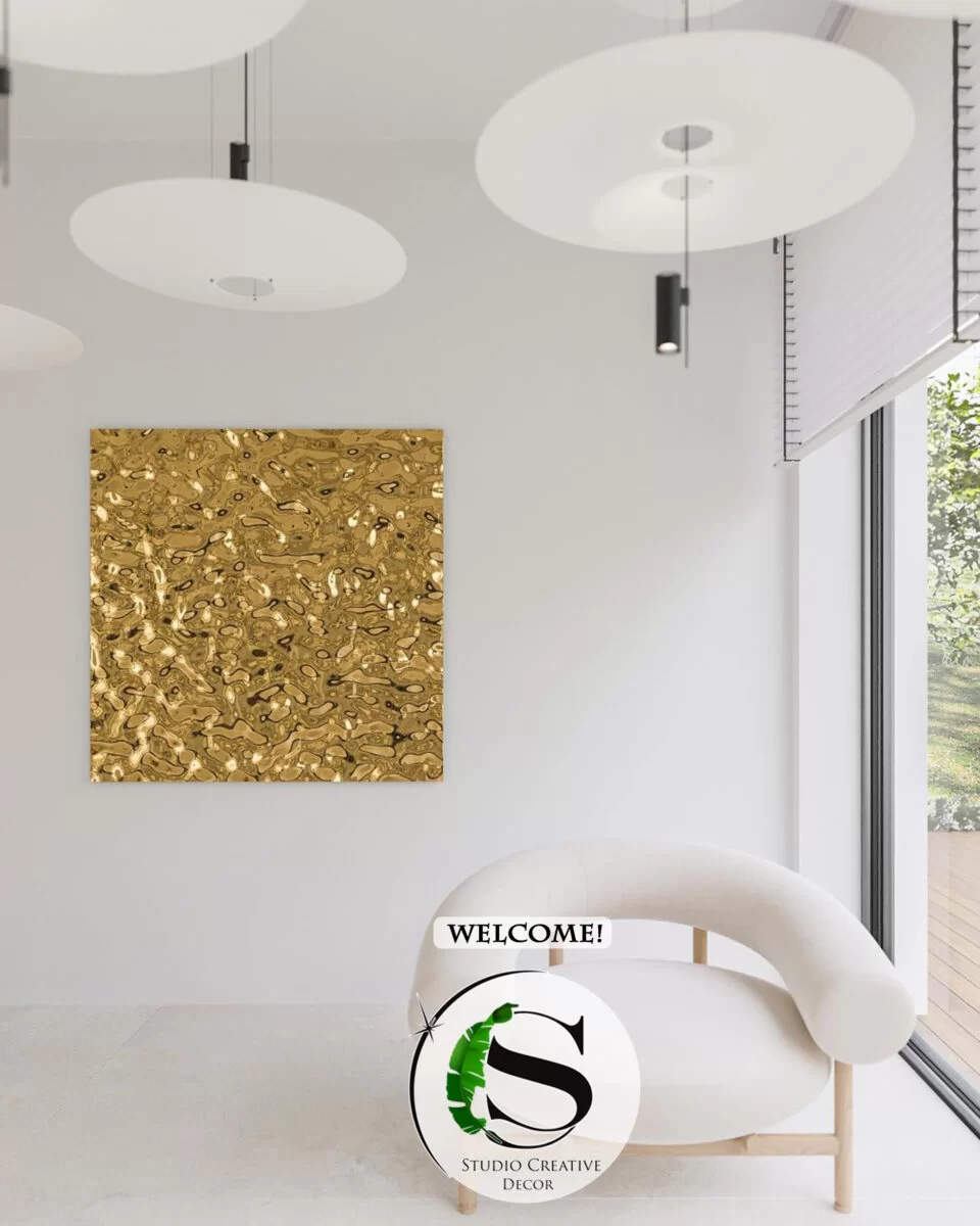 - Kolor: złoto z refleksami - ten kolor nie jest statyczny – on żyje, oddycha światłem, tworząc iluzję głębi i ruchu na nieruchomej powierzchni – dynamiczny efekt światłocienia zmieniający się pod wpływem oświetlenia.