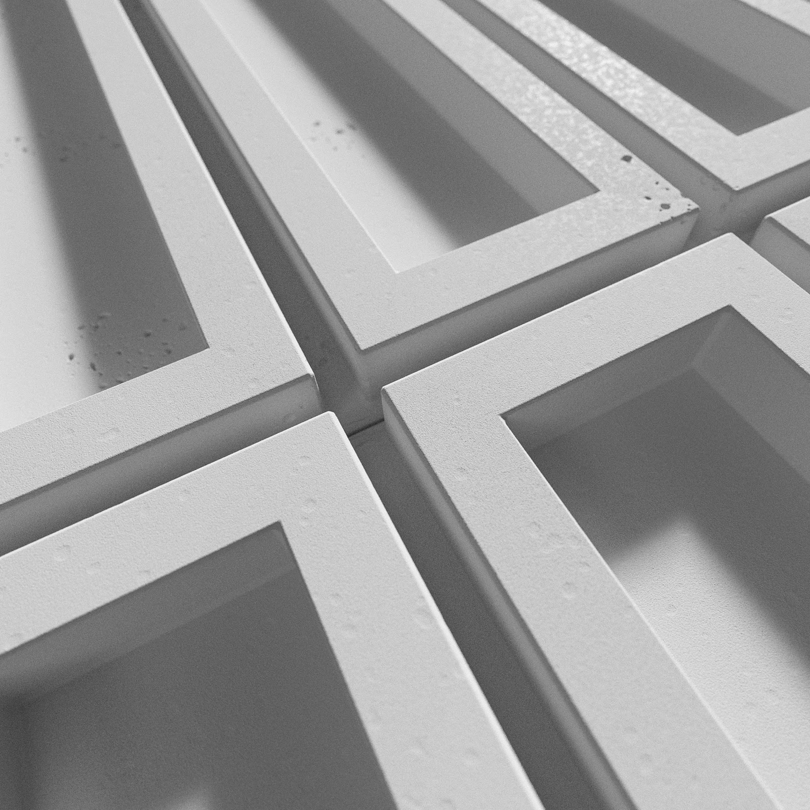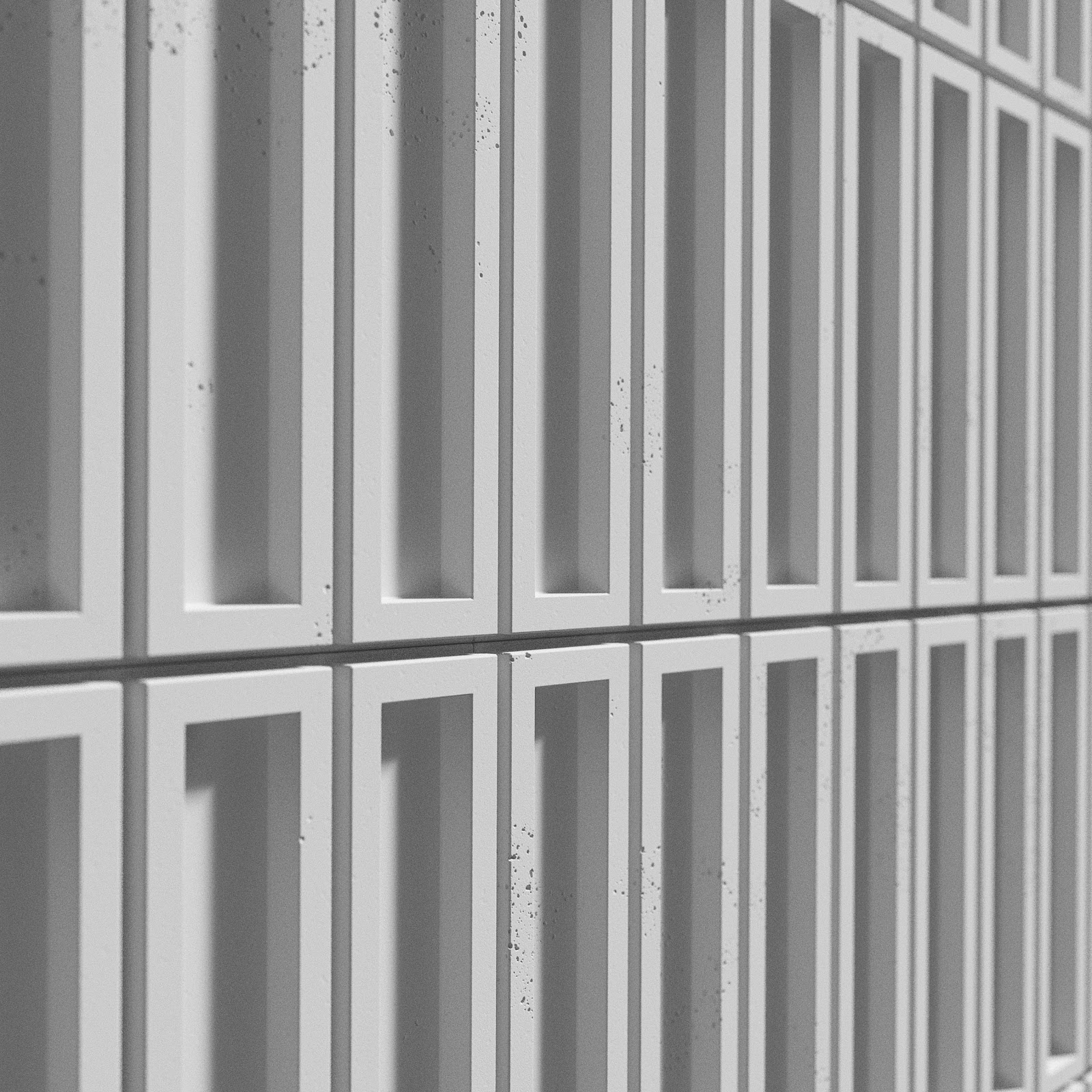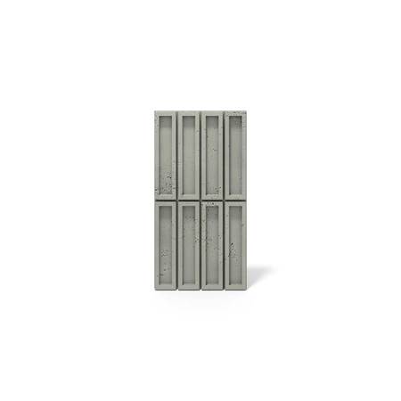 - Panel betonowy posiada różne grubości elementów, które tworzą wyrazisty efekt 3D, nadając ścianie dynamicznego i atrakcyjnego wyglądu.