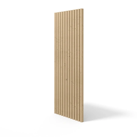 - Panel betonowy posiada różne grubości elementów, które tworzą wyrazisty efekt 3D, nadając ścianie dynamicznego i atrakcyjnego wyglądu.