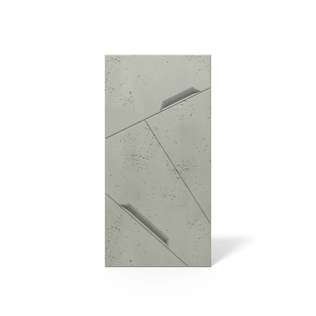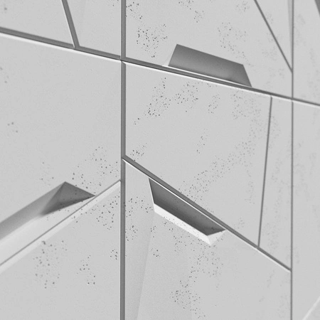 - Panel betonowy posiada różne grubości elementów, które tworzą wyrazisty efekt 3D, nadając ścianie dynamicznego i atrakcyjnego wyglądu.