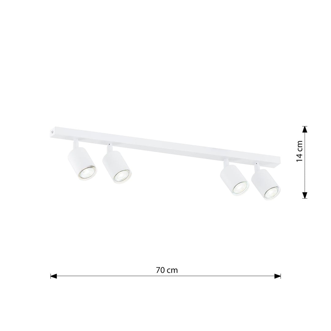 - Dostępna w dwóch eleganckich kolorach – czarnym lub białym – z wykończeniem matowym, oferuje 4 lub 6 źródeł światła, abyś mógł dostosować intensywność do własnych upodobań.