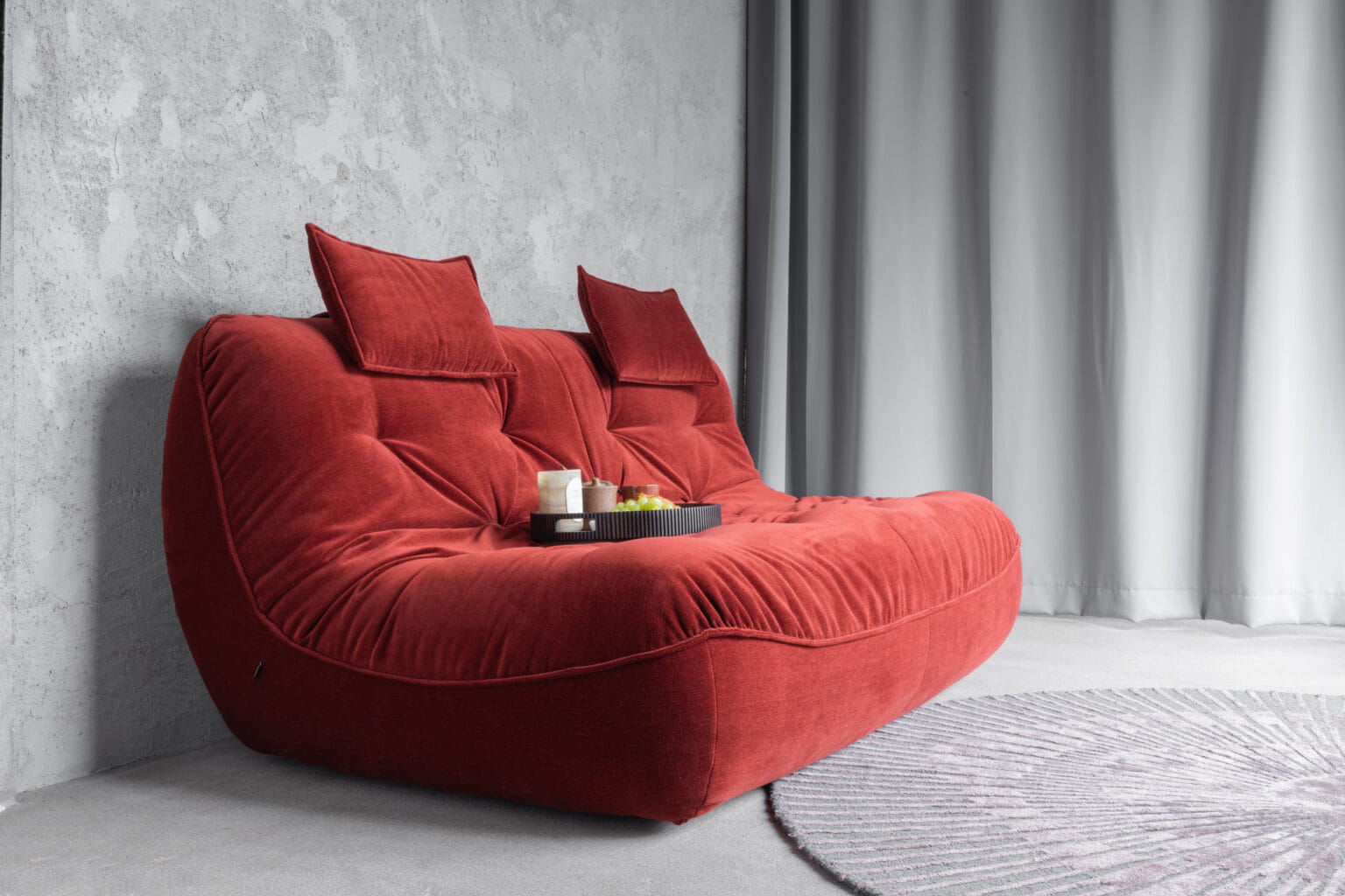 - Miękka, otulająca bryła sprzyja relaksowi i swobodnej pozycji siedzącej.