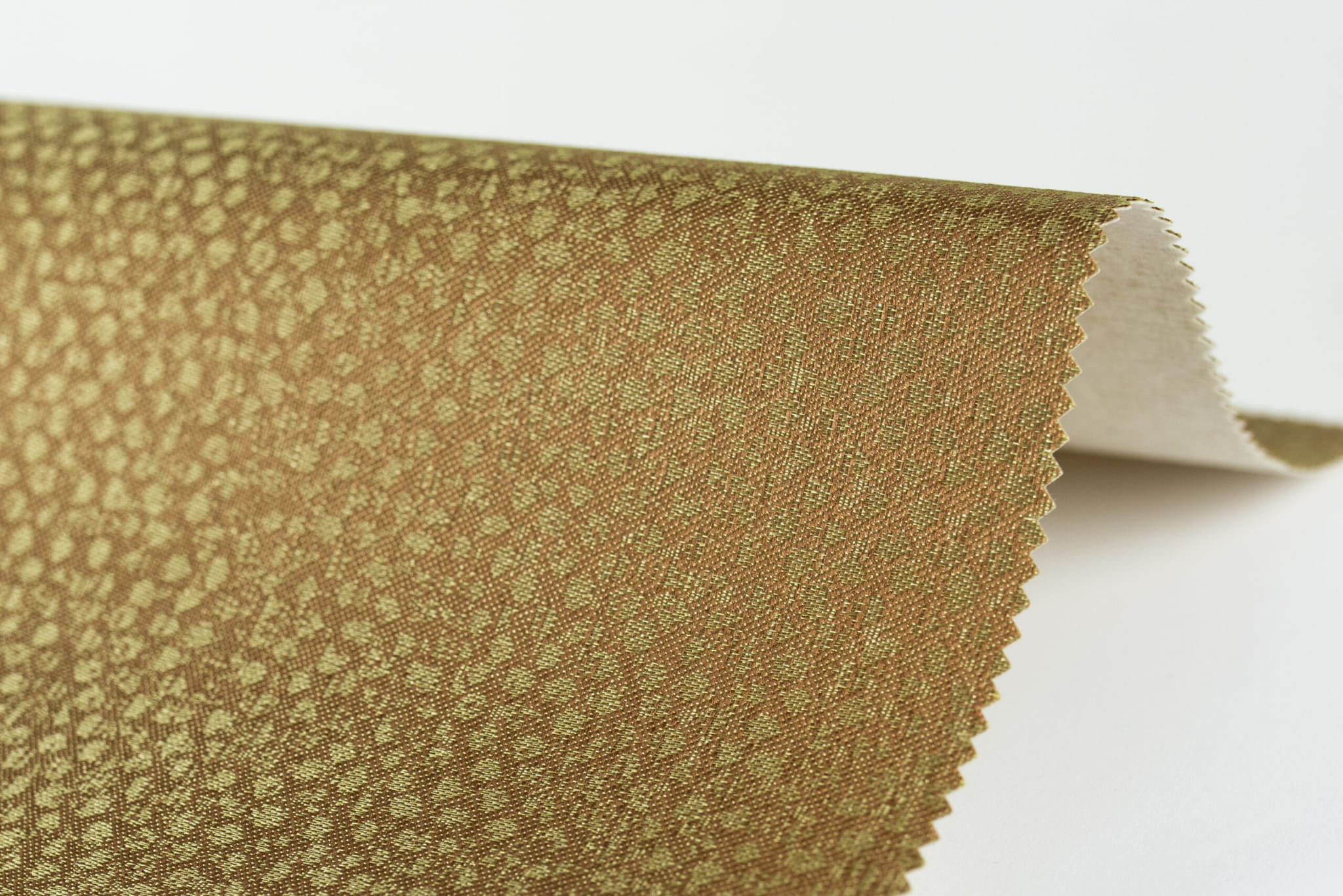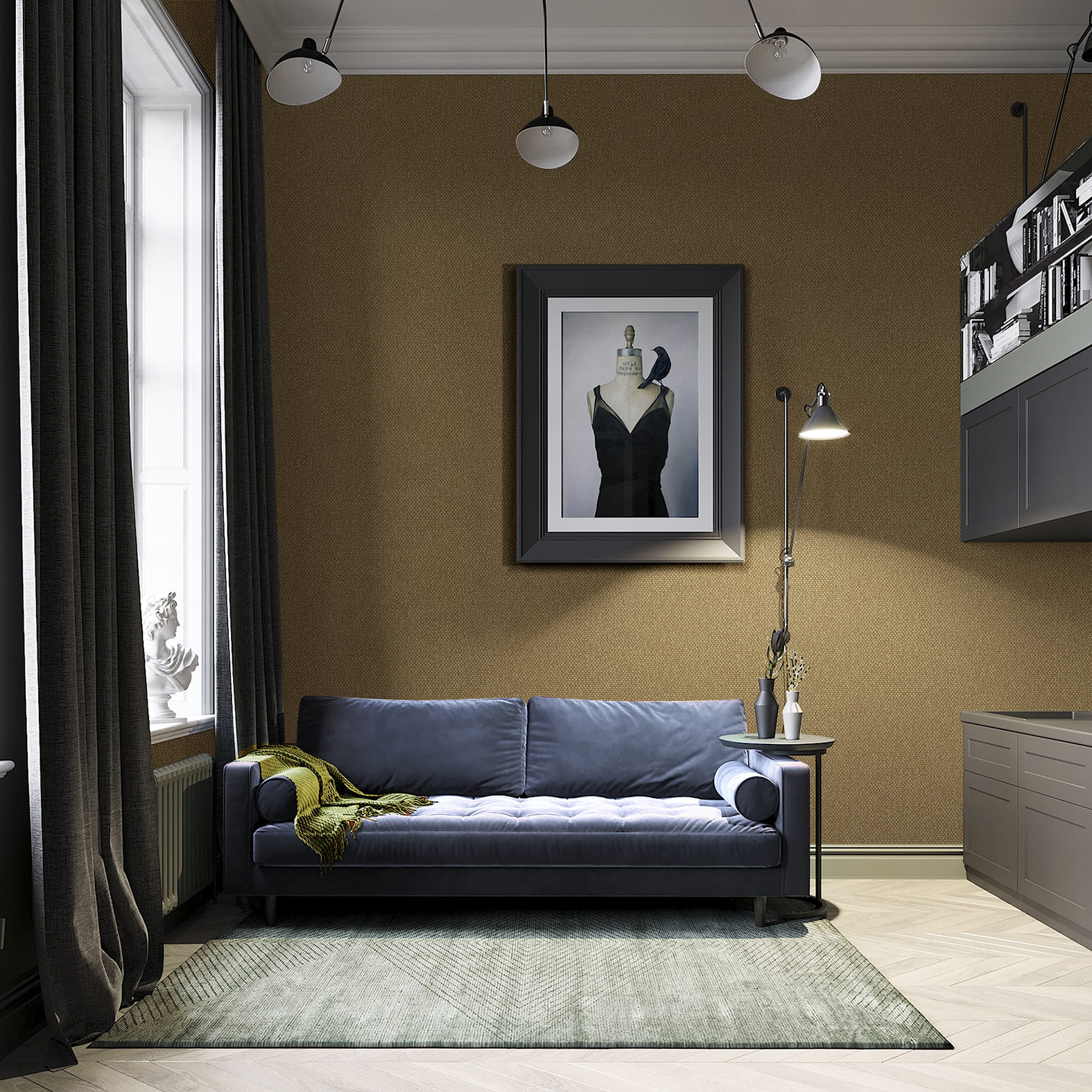 Tapeta z tkaniny LadyWALL 1-46 jest wykonana z wytrzymałej tkaniny. Dominujący kolor to złocisty beż, brąz, który tworzy eleganckie tło. Na powierzchni tapety widoczny jest wzór w postaci kropek w trochę innym odcieniu. Wzór jest lekko połyskujący. Tkanina ścienna jest alternatywą dla tradycyjnych tapet, łącząc w sobie elegancję i funkcjonalność. Forma tapety pozwala na bezszwowe układanie, co znacząco skraca czas montażu i nadaje wnętrzu bardziej elegancki wygląd.
