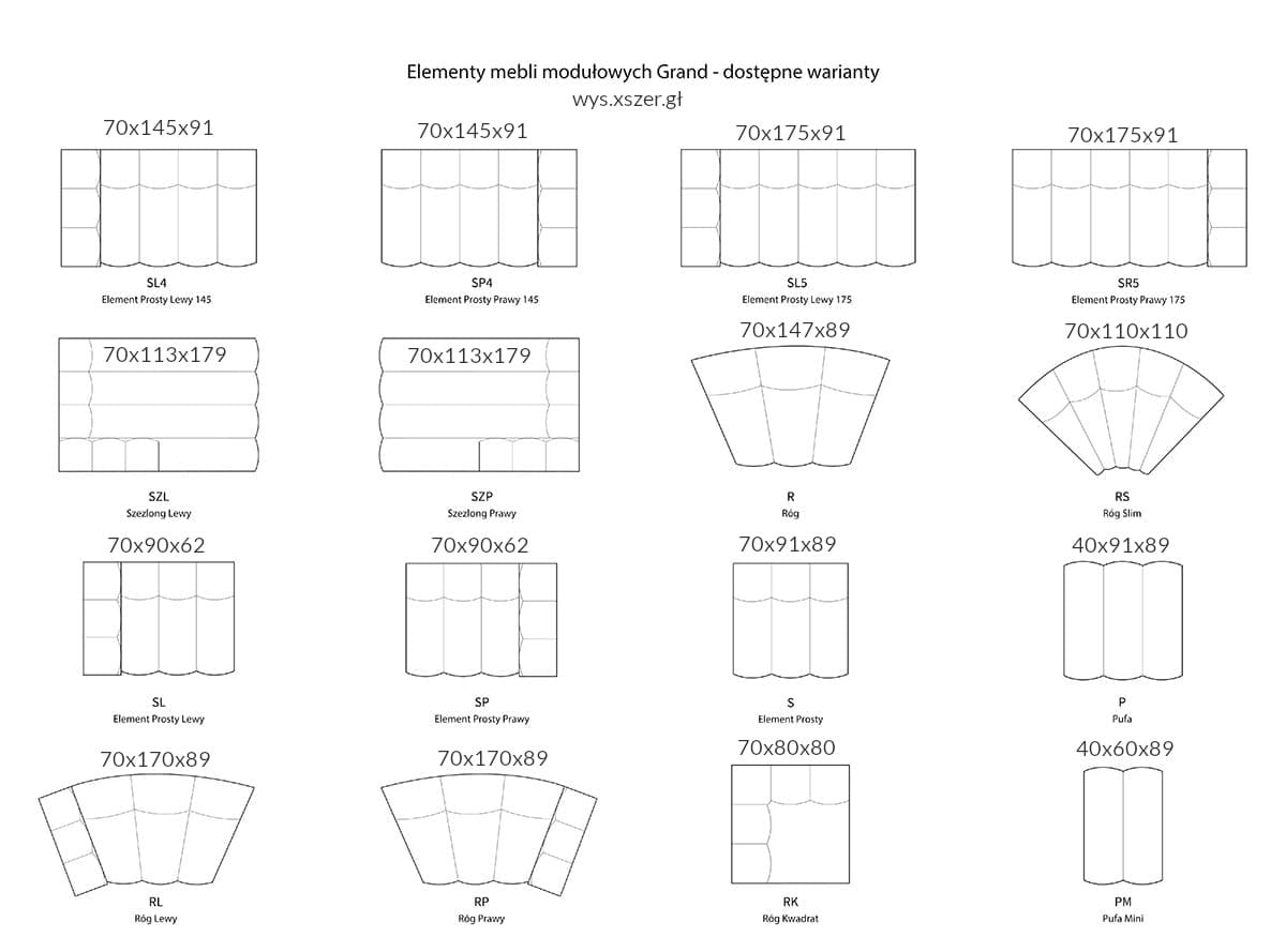 - Element prosty S 91 cm – podstawowy moduł do budowy sofy.