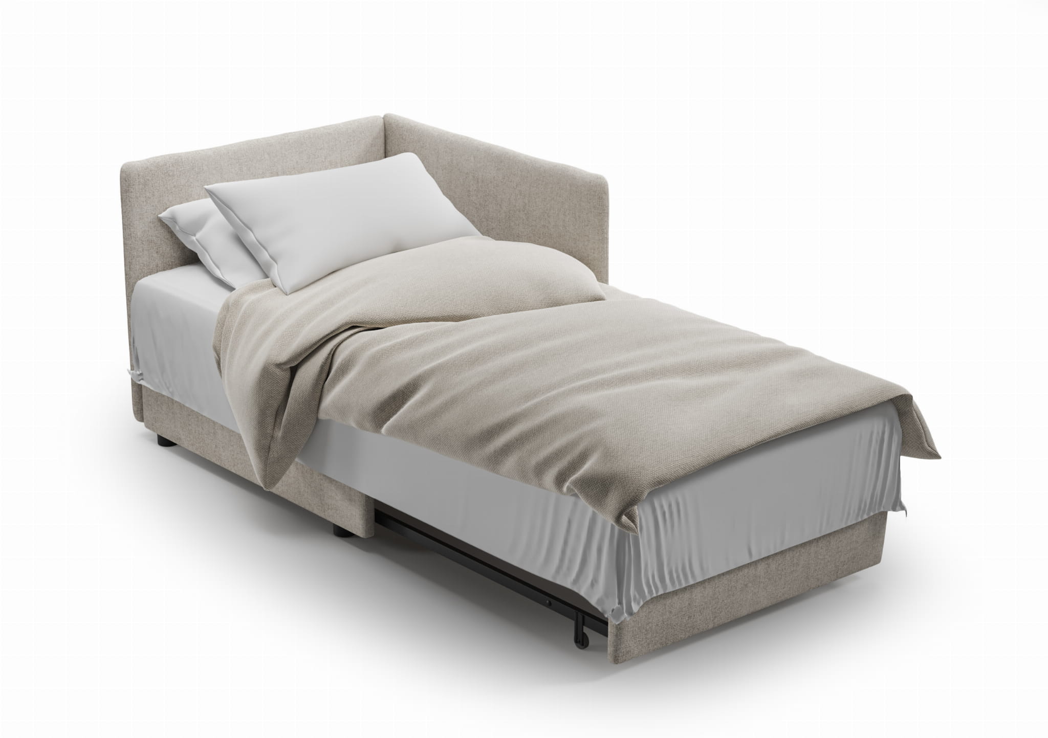 - Pojemnik na pościel – ukryty w podstawie mebla, pozwala przechowywać koc, pościel lub poduszkę.