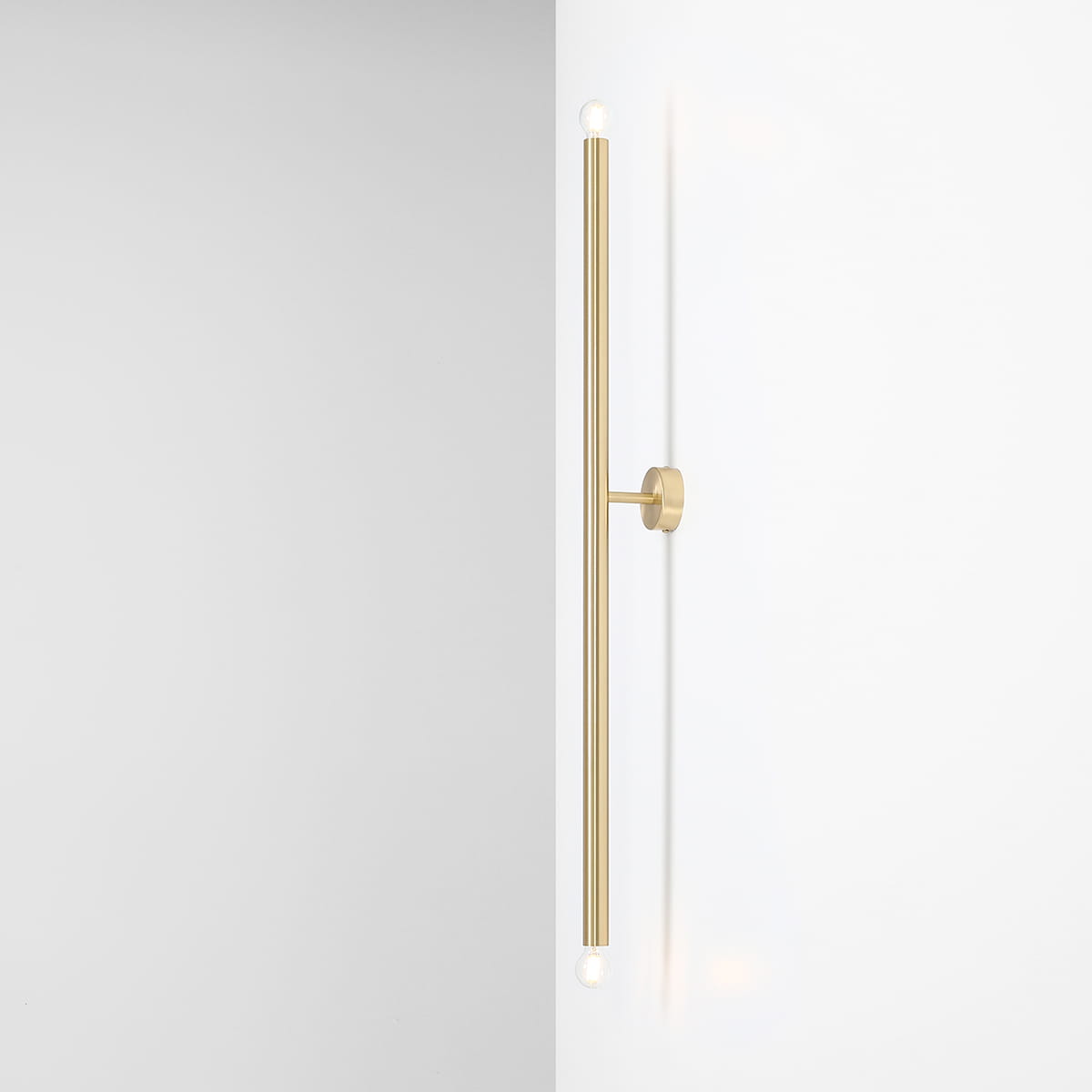 - Kinkiet Tubo 2 Brass w rozmiarze L i wysokości 100 cm w kolorze mosiądzu.