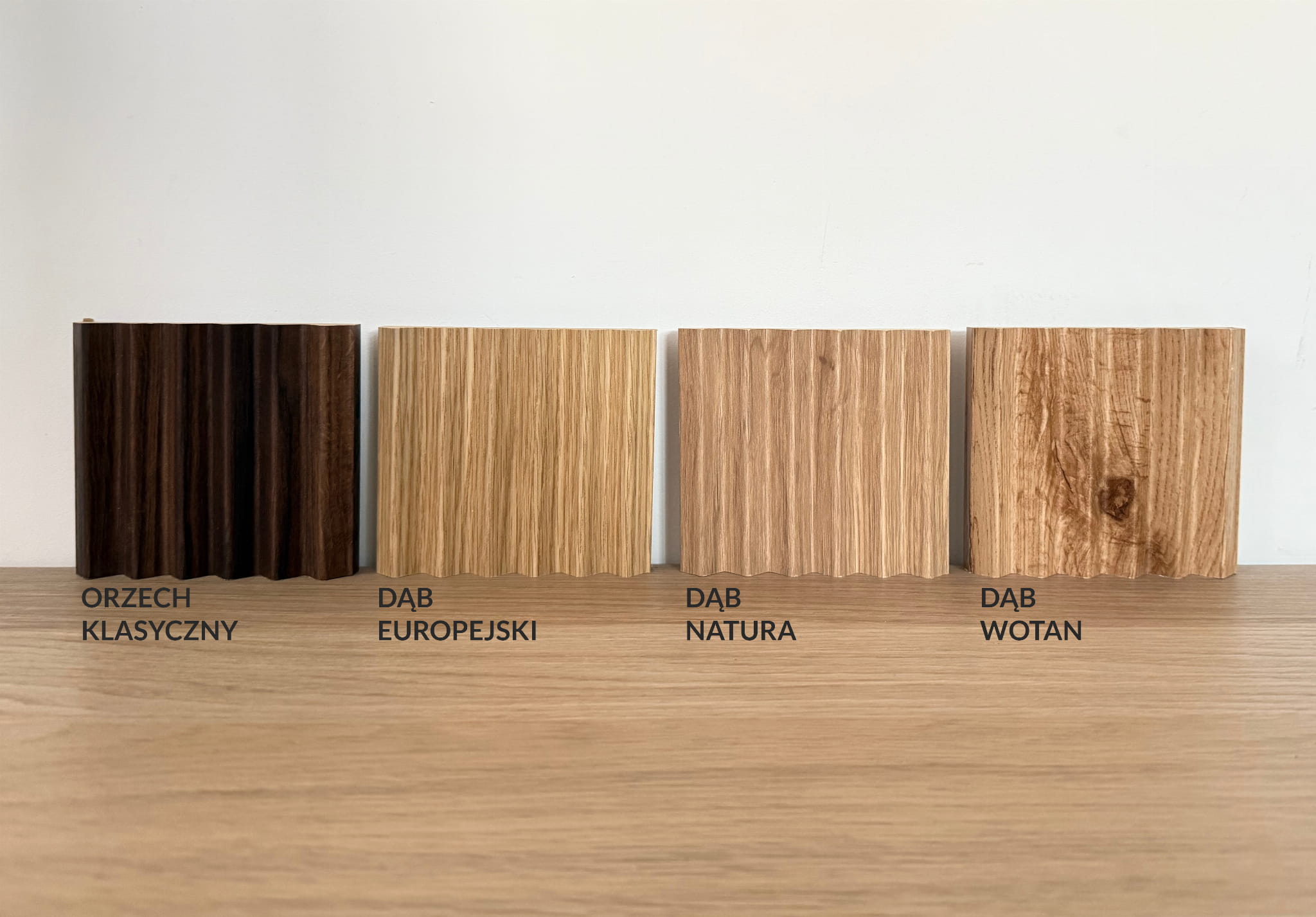 - Mikrolamele ryflowane w kolorze Dąb Wotan to nowoczesna dekoracja ścienna z ciepłym, naturalnym wzorem drewna.