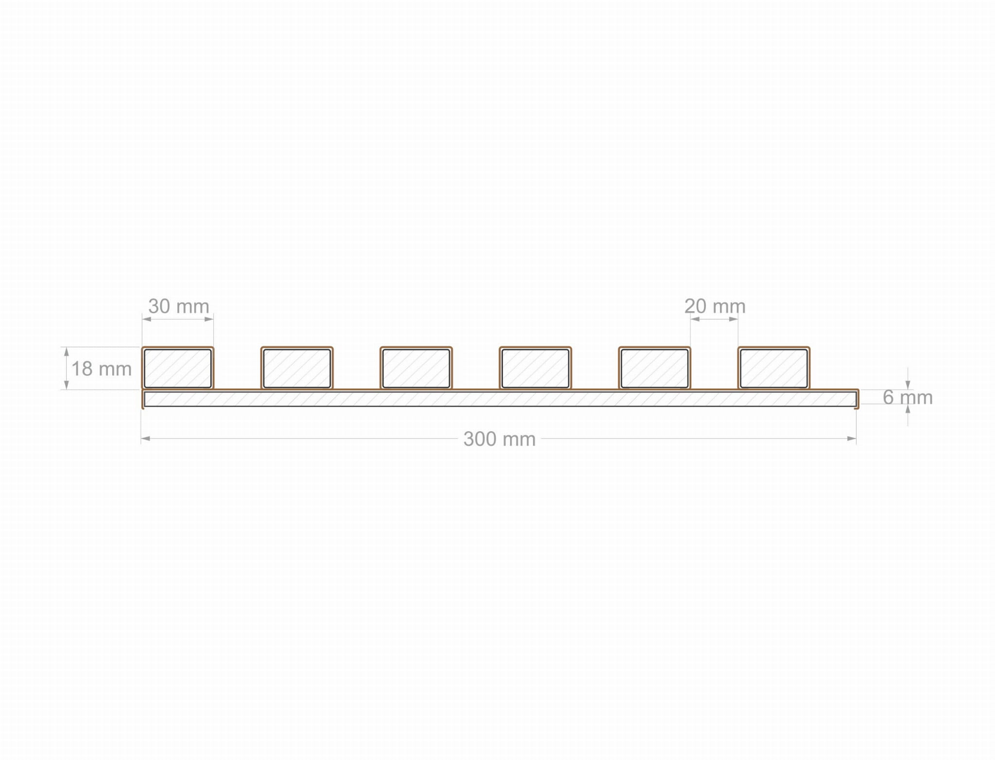 - Rozstaw lameli co 2 cm – na jednej płycie znajduje się 6 szt. lameli, co zapewnia równy i harmonijny układ.