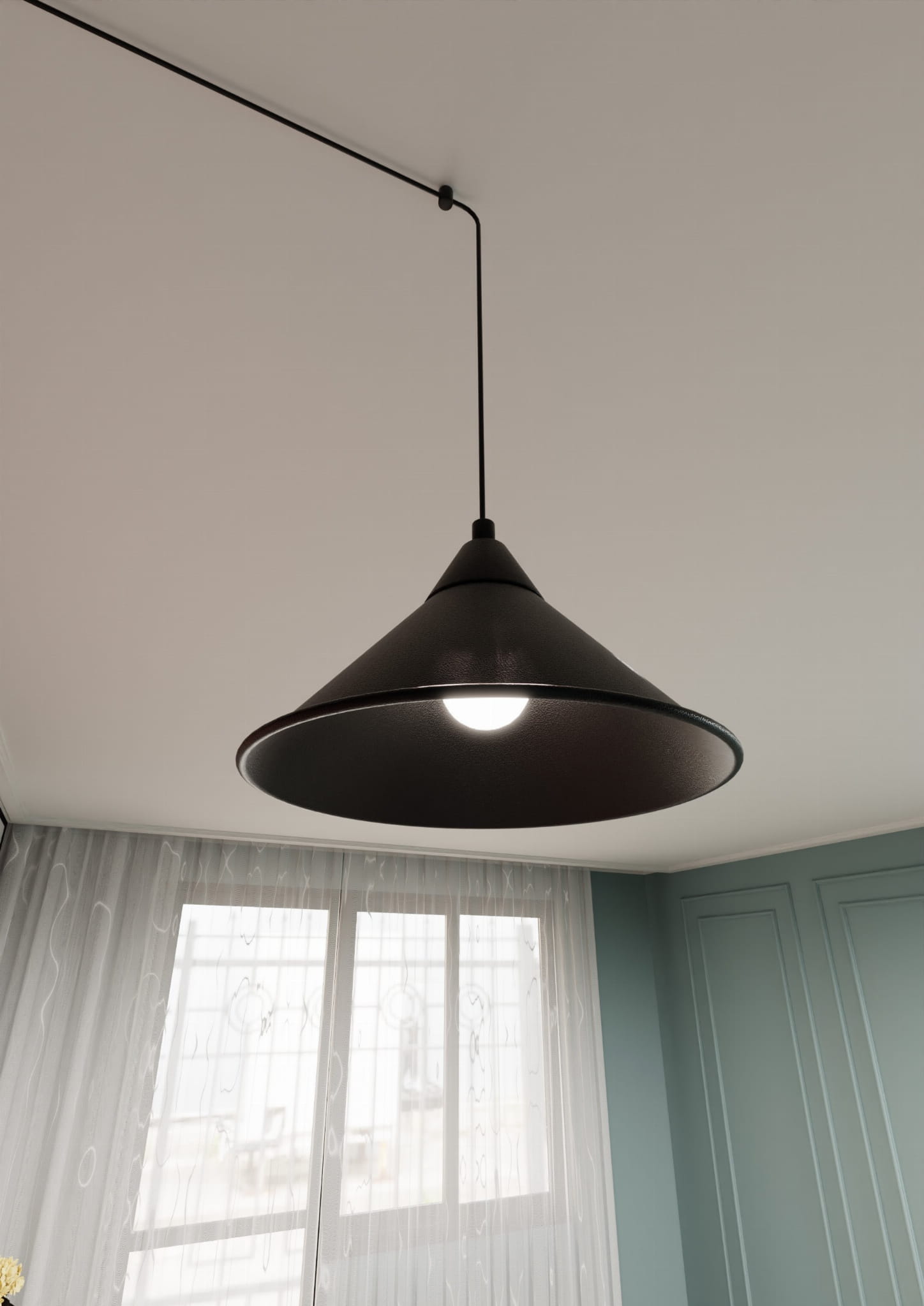 - Lampa ABRAMO 1 BLACK 160/1 najbardziej efektownie wygląda zawieszona na ścianie lub suficie.