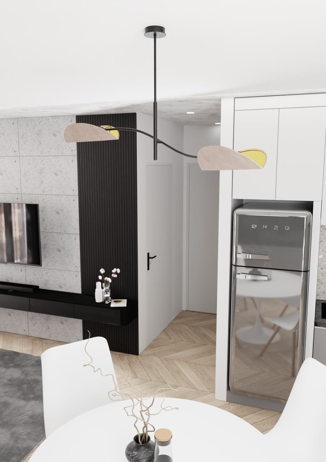 - Otwarta forma abażurów zapewnia doskonałe oświetlenie, podkreślając przyjemny i nastrojowy klimat wnętrza.
