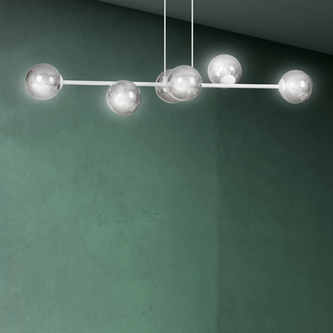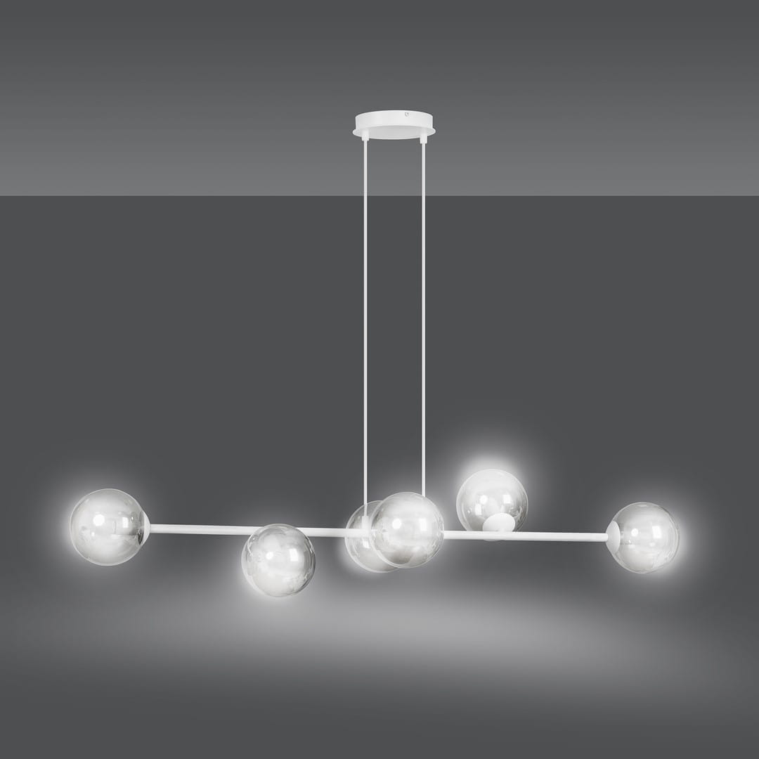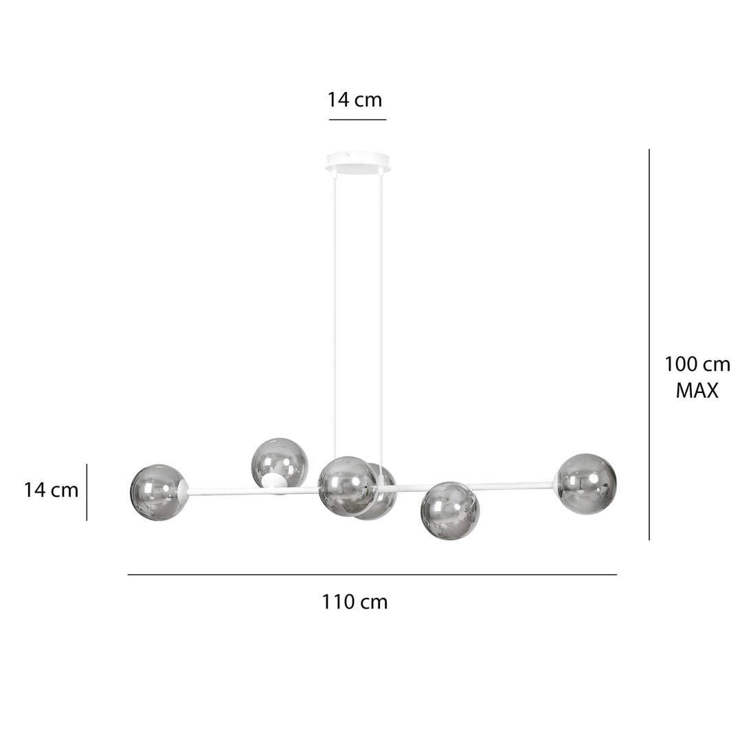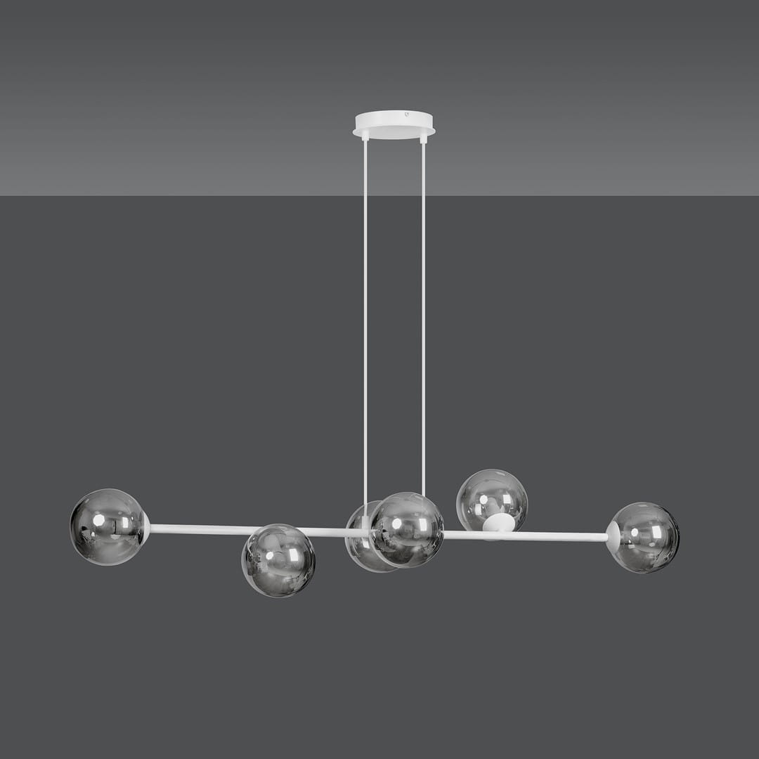 - Lampa wisząca Rossi 6 WH Grafit jest w kolorze białym i ma grafitowe, szklane klosze.