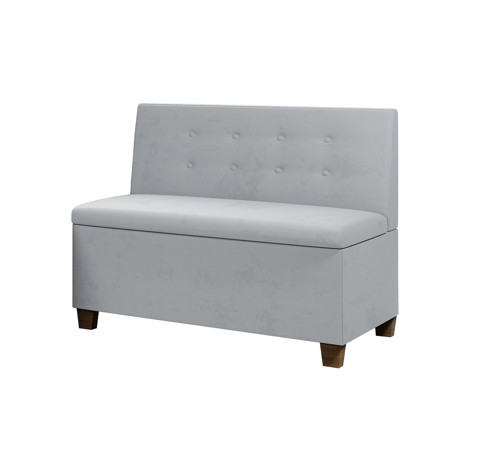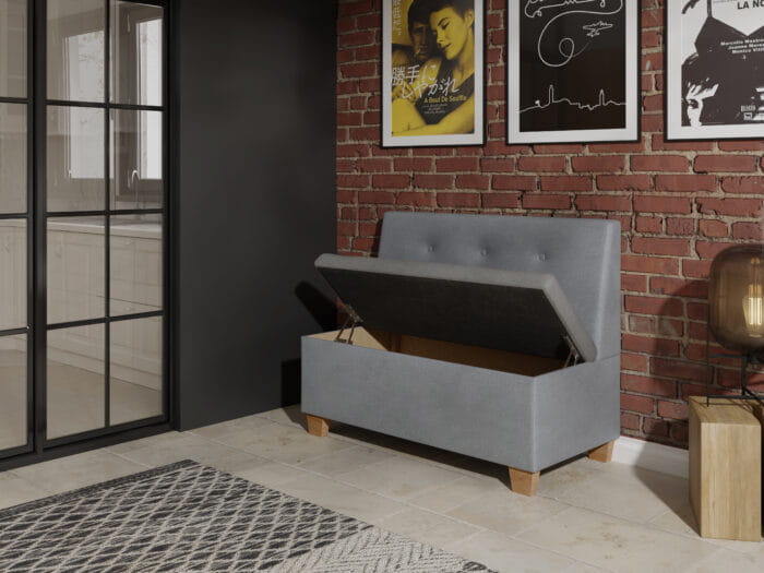 Ławka Walencja to elegancki i funkcjonalny mebel tapicerowany, który łączy klasyczny styl z praktycznością codziennego użytkowania. Subtelne pikowanie guzikowe na oparciu nadaje jej ponadczasowy, dekoracyjny charakter, a przestronny schowek ukryty pod siedziskiem zapewnia wygodne miejsce do przechowywania. Ławka doskonale sprawdzi się w kuchni, jadalni lub przedpokoju, a szeroki zakres dostępnych rozmiarów oraz kolorów tkanin i nóżek pozwala na idealne dopasowanie do każdego wnętrza.