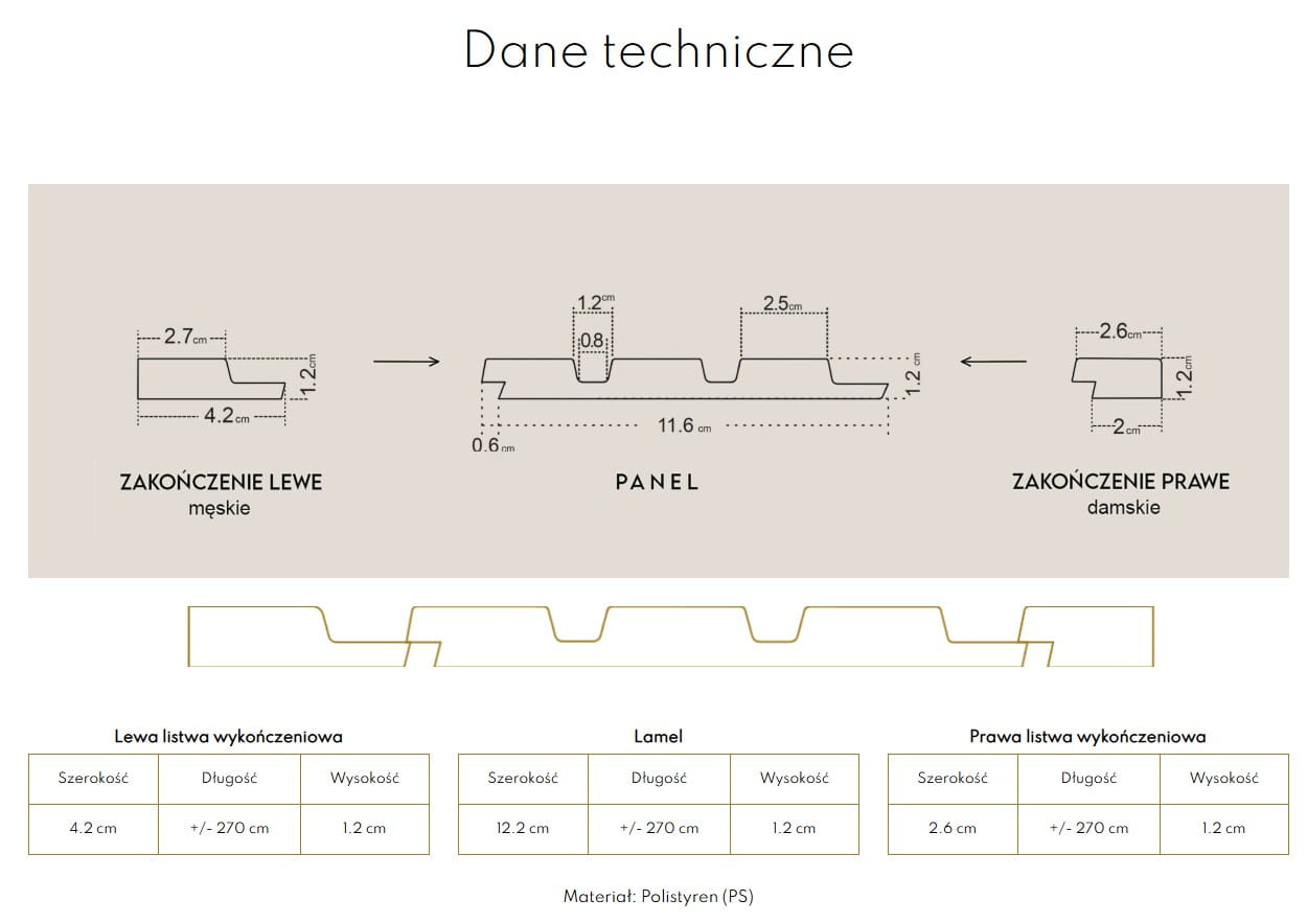 - Montaż w systemie pióro-wpust ułatwia szybkie i stabilne łączenie listwy z panelem.