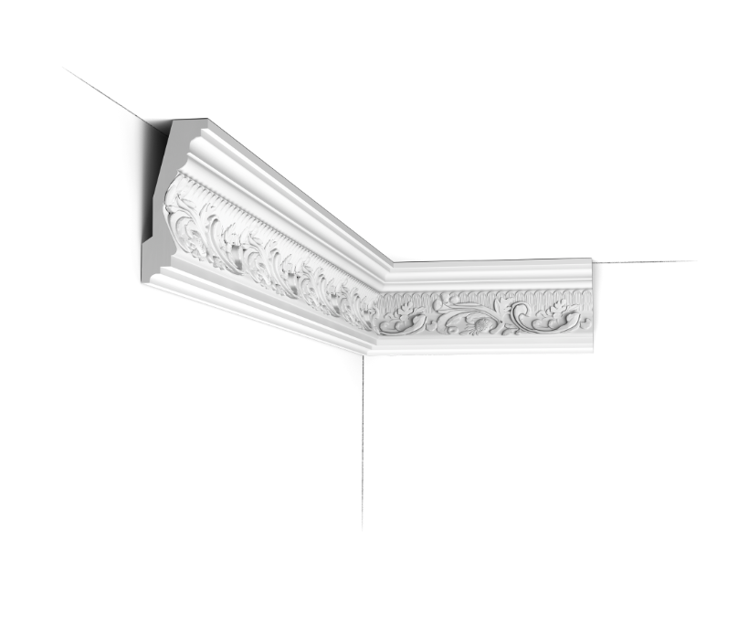 Listwa sufitowa C201 ozdobiona przyciągającym uwagę wzorem liści. Idealna do łączenia z innymi elementami sztukaterii z oferty Orac Decor. Dzięki eleganckiemu profilowi skutecznie podkreśli i zwieńczy miejsce łączenia ścian z sufitem.