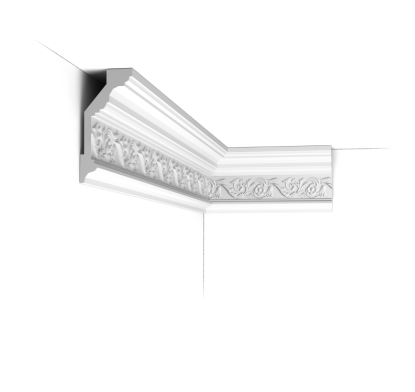 Listwa sufitowa C303 to okazała listwa gzymsowa z bogatym motywem florystycznym, która od razu wnosi do wnętrza luksus i elegancję. Idealna do łączenia z innymi elementami sztukaterii z oferty Orac Decor. Dzięki eleganckiemu profilowi skutecznie podkreśli i zwieńczy miejsce łączenia ścian z sufitem.