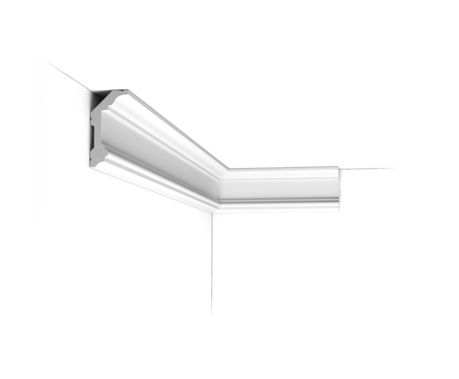 Listwa sufitowa C321 wyróżnia się liniową formą, która tworzy wyjątkową grę światła i cienia. Idealna do łączenia z innymi elementami sztukaterii z oferty Orac Decor. Dzięki eleganckiemu profilowi skutecznie podkreśli i zwieńczy miejsce łączenia ścian z sufitem.