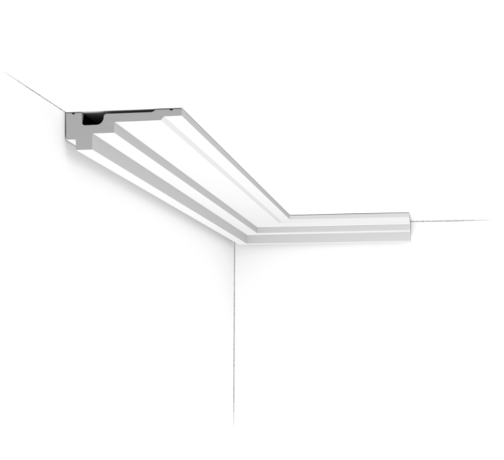 Listwa sufitowa C355 to prosta, płaska listwa gzymsowa z tylnym wcięciem tworzącym efekt linii cienia - doskonale komponuje się z każdym typem wnętrza. Idealna do łączenia z innymi elementami sztukaterii z oferty Orac Decor. Dzięki eleganckiemu profilowi skutecznie podkreśli i zwieńczy miejsce łączenia ścian z sufitem.