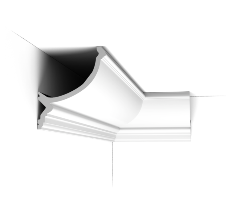 Listwa sufitowa C900 Steps to wypukła listwa gzymsowa w stylu Ovolo - harmonijnie komponuje się z każdym typem wnętrza. Idealna do łączenia z innymi elementami sztukaterii z oferty Orac Decor. Dzięki eleganckiemu profilowi skutecznie podkreśli i zwieńczy miejsce łączenia ścian z sufitem.