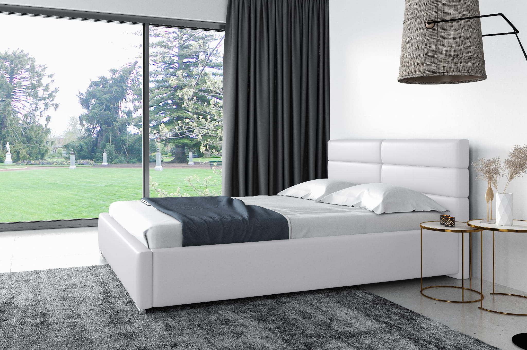 - Łóżko tapicerowane Lorien ma prosty zagłówek, wykonany z pianki o grubości 3 cm. Na zagłówku, dzięki przeszyciom tworzy się symetryczne kształty prostokątów.