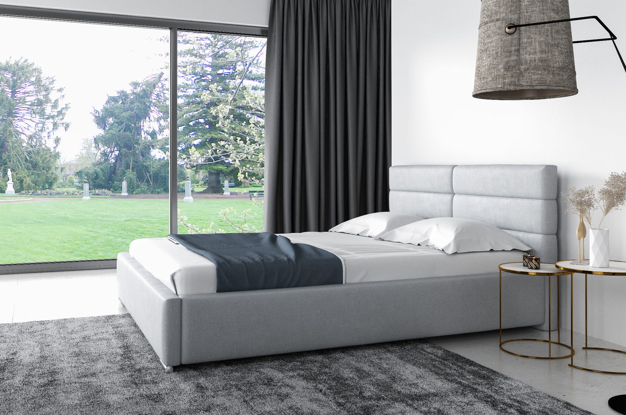 - Standardowo wezgłowie łóżka jest obite podbitką fibertex, co oznacza, że łóżko nie jest wolnostojące. Możliwe jest tapicerowanie wezgłowia łóżka tą samą tkaniną, co reszta łóżka.