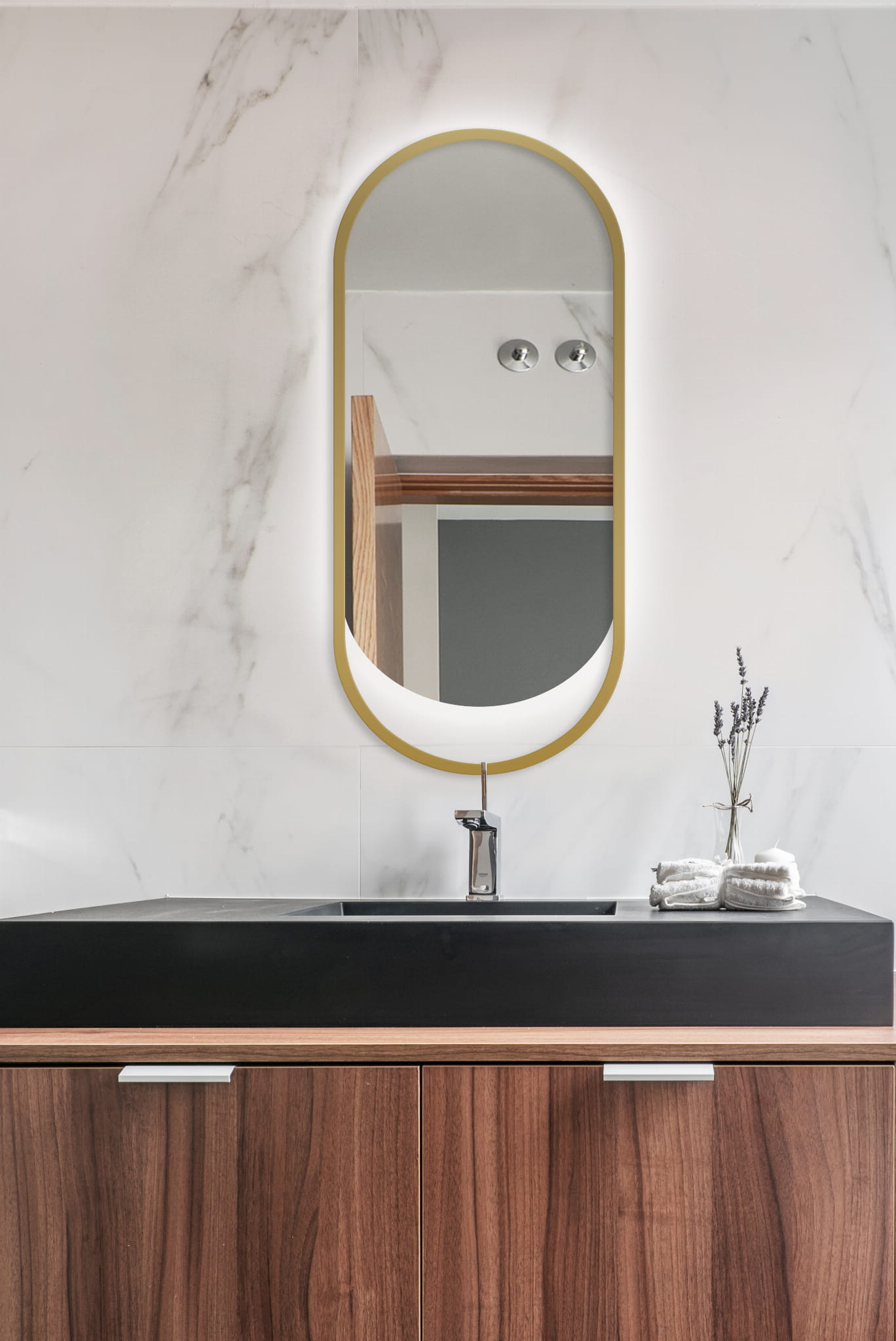 Lustro Owalne Hola Gold w złotej ramce z podświetleniem LED