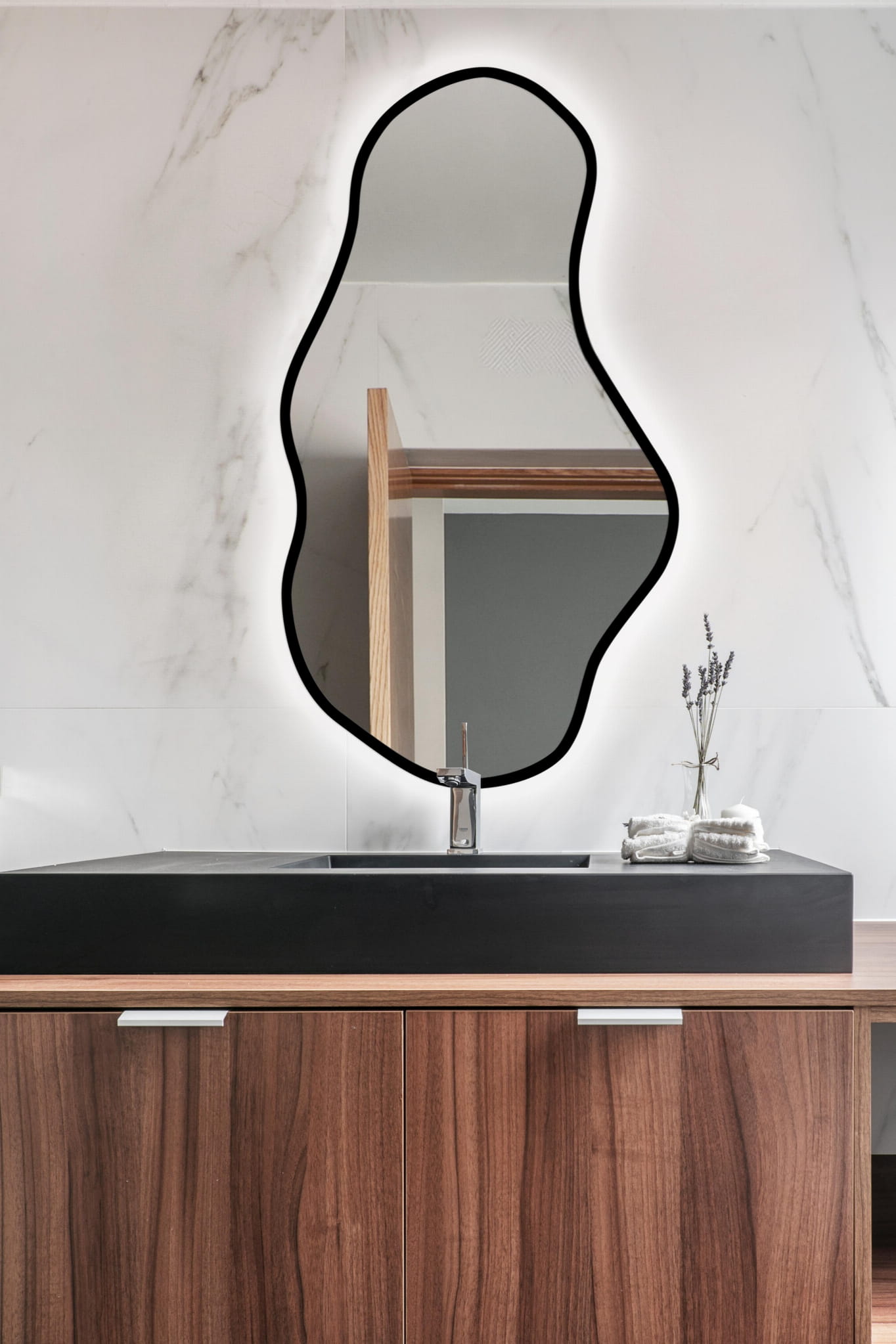 Lustro organiczne Tora Black w czarnej ramce z podświetleniem LED