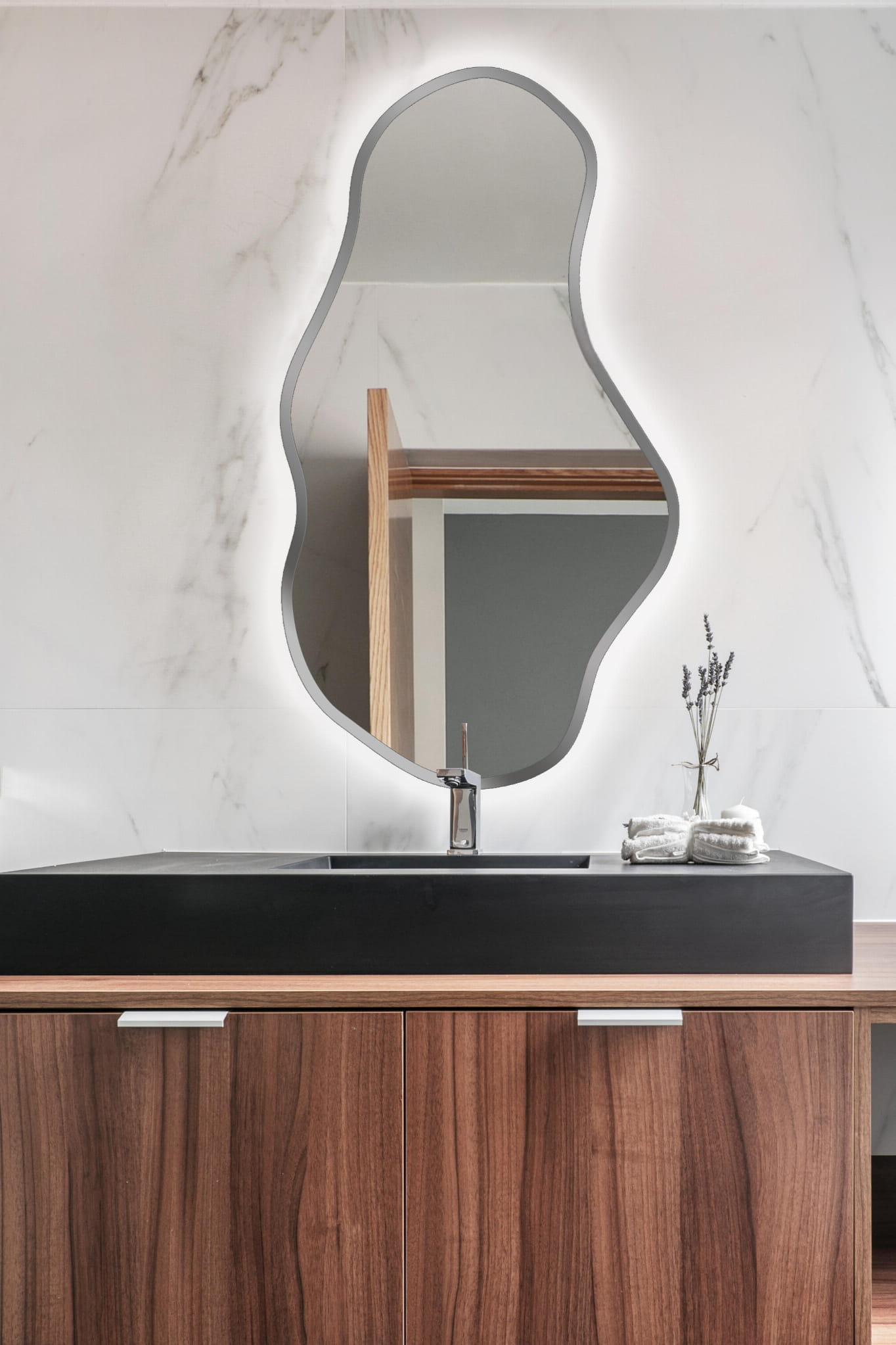 Lustro Organiczne Tora Silver z podświetleniem LED