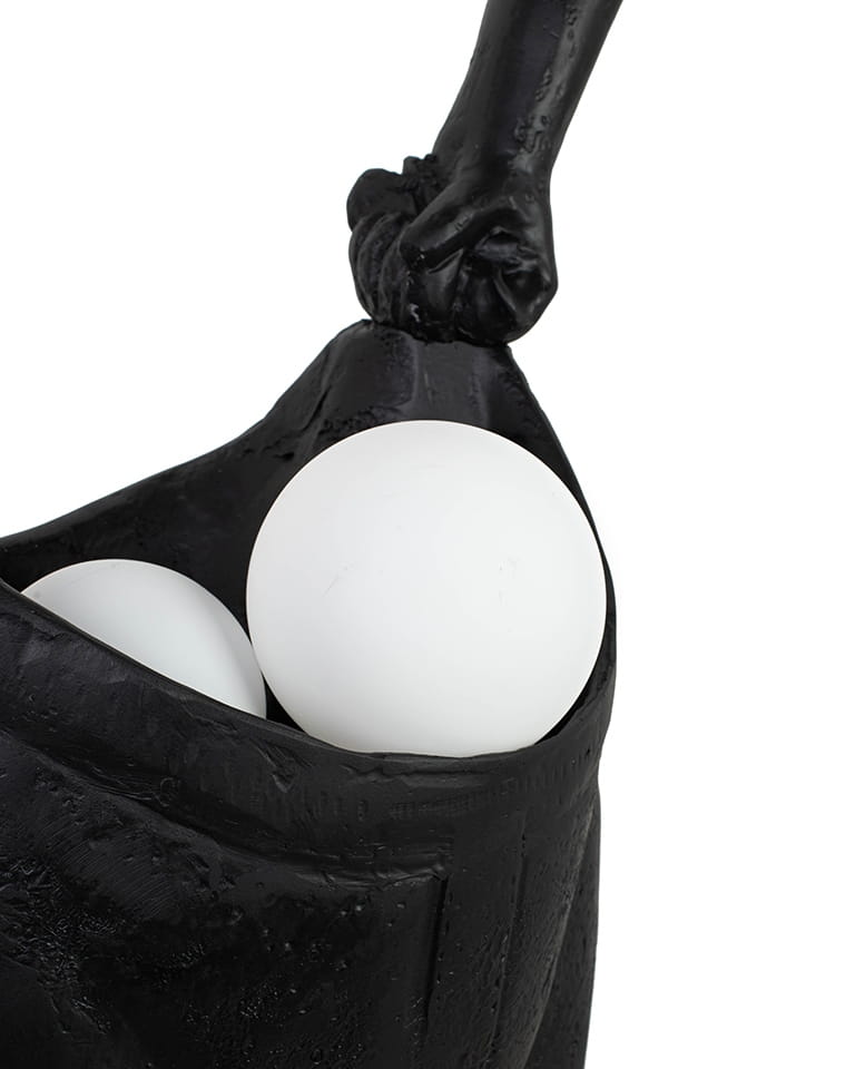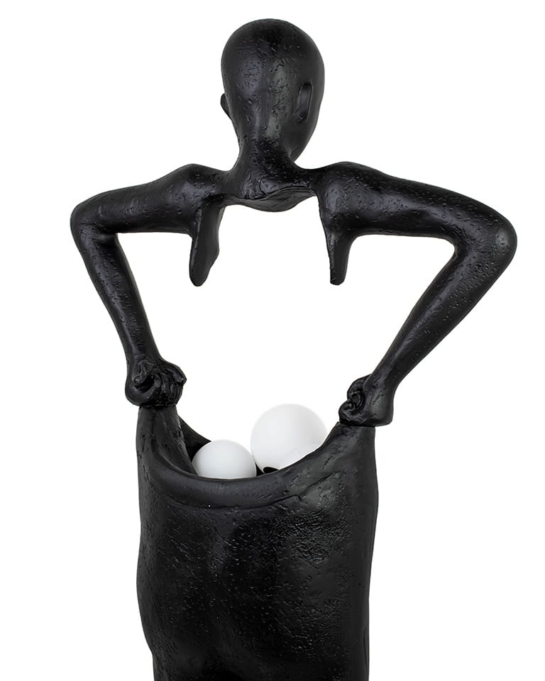 Centralnym punktem są szklane klosze, subtelnie ukryte w "spodniach" figury, które nadają zaskakujący, artystyczny wyraz.