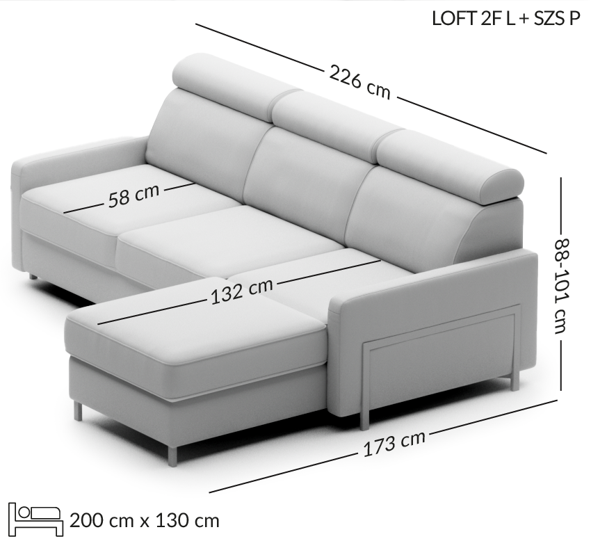 Narożnik z funkcją spania Loft 225 cm - MP Nidzica