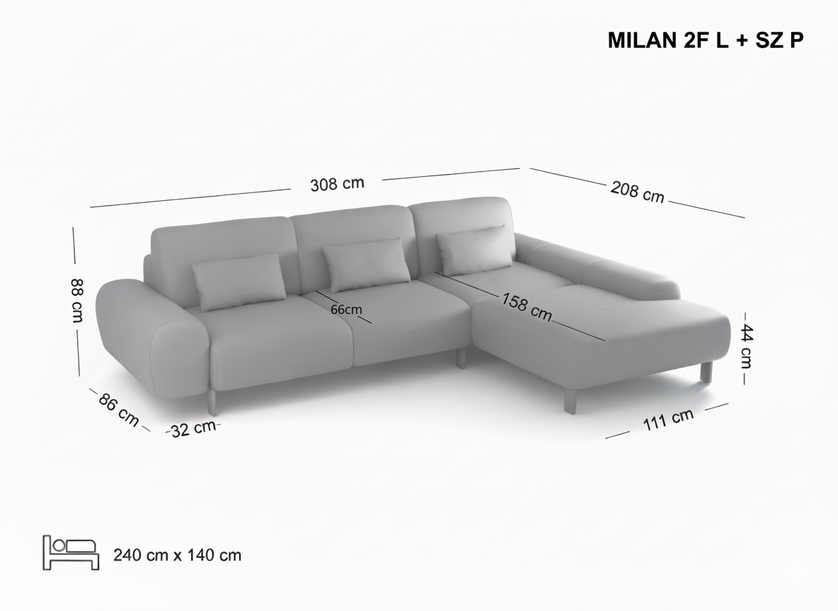 Narożnik z funkcją spania Milan 308 cm - MP Nidzica