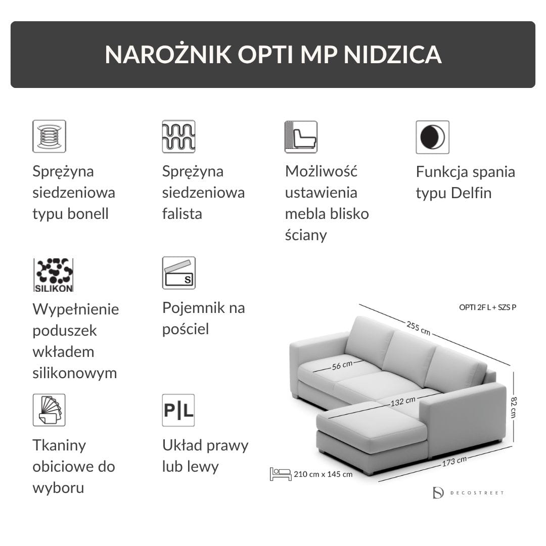 Narożnik z funkcją spania Opti 255 cm – MP Nidzica