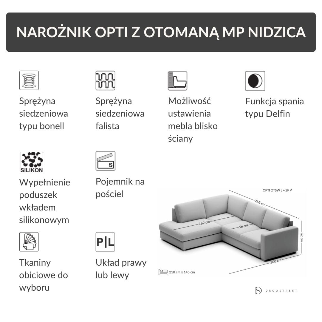 Narożnik Opti z funkcją spania i otomaną 255 cm - MP Nidzica