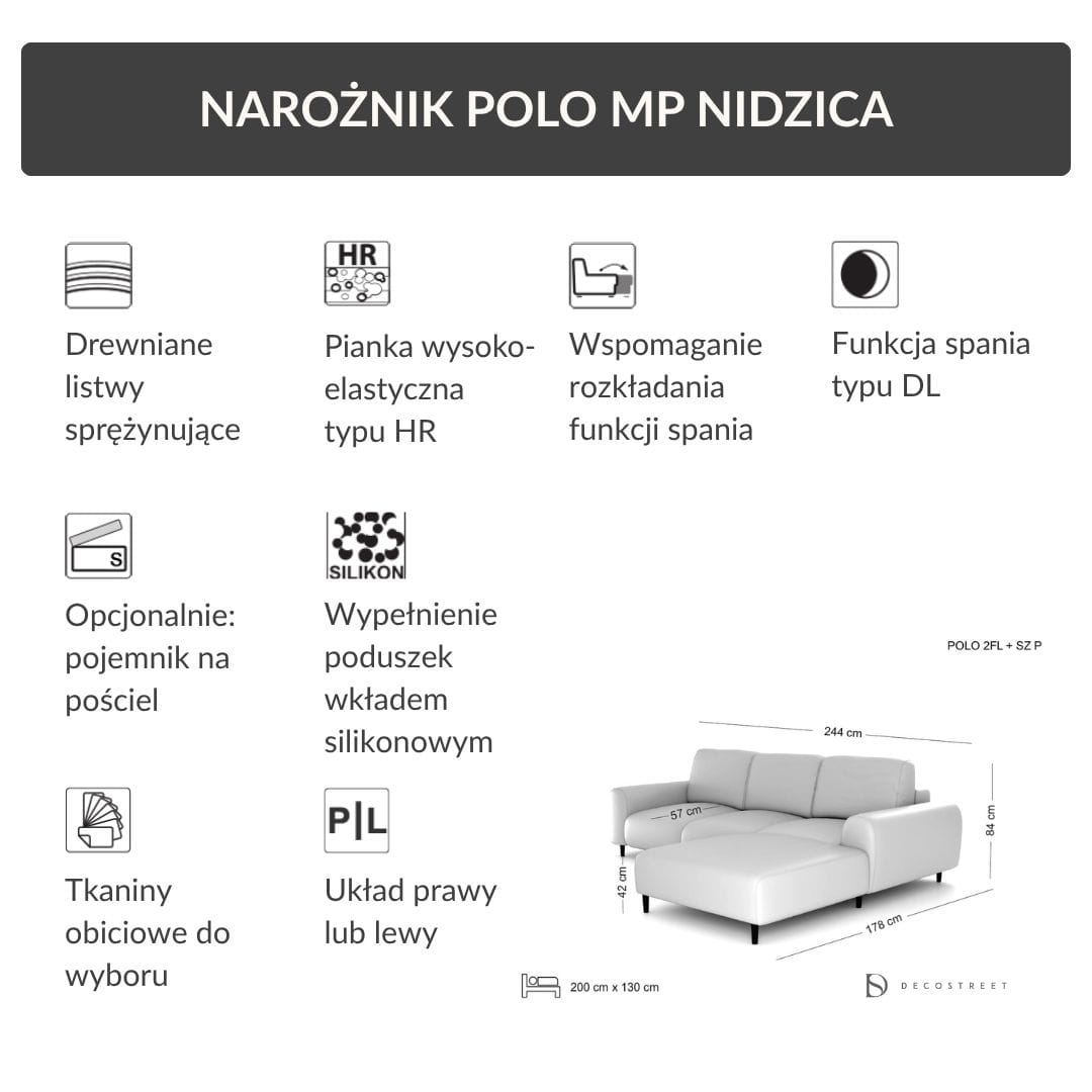 Narożnik Polo z funkcją spania 244 cm MP Nidzica