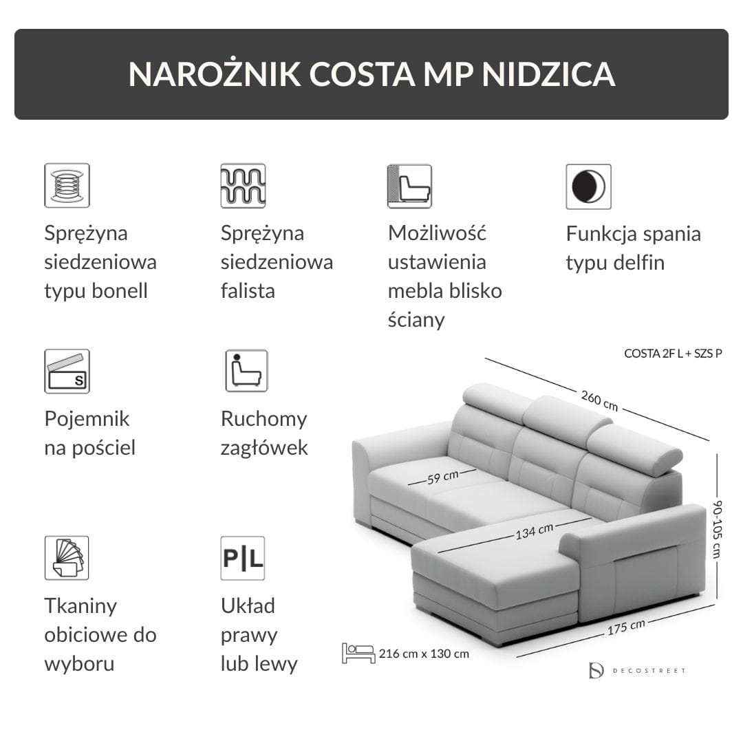 Narożnik rozkładany Costa MP Nidzica 260 cm