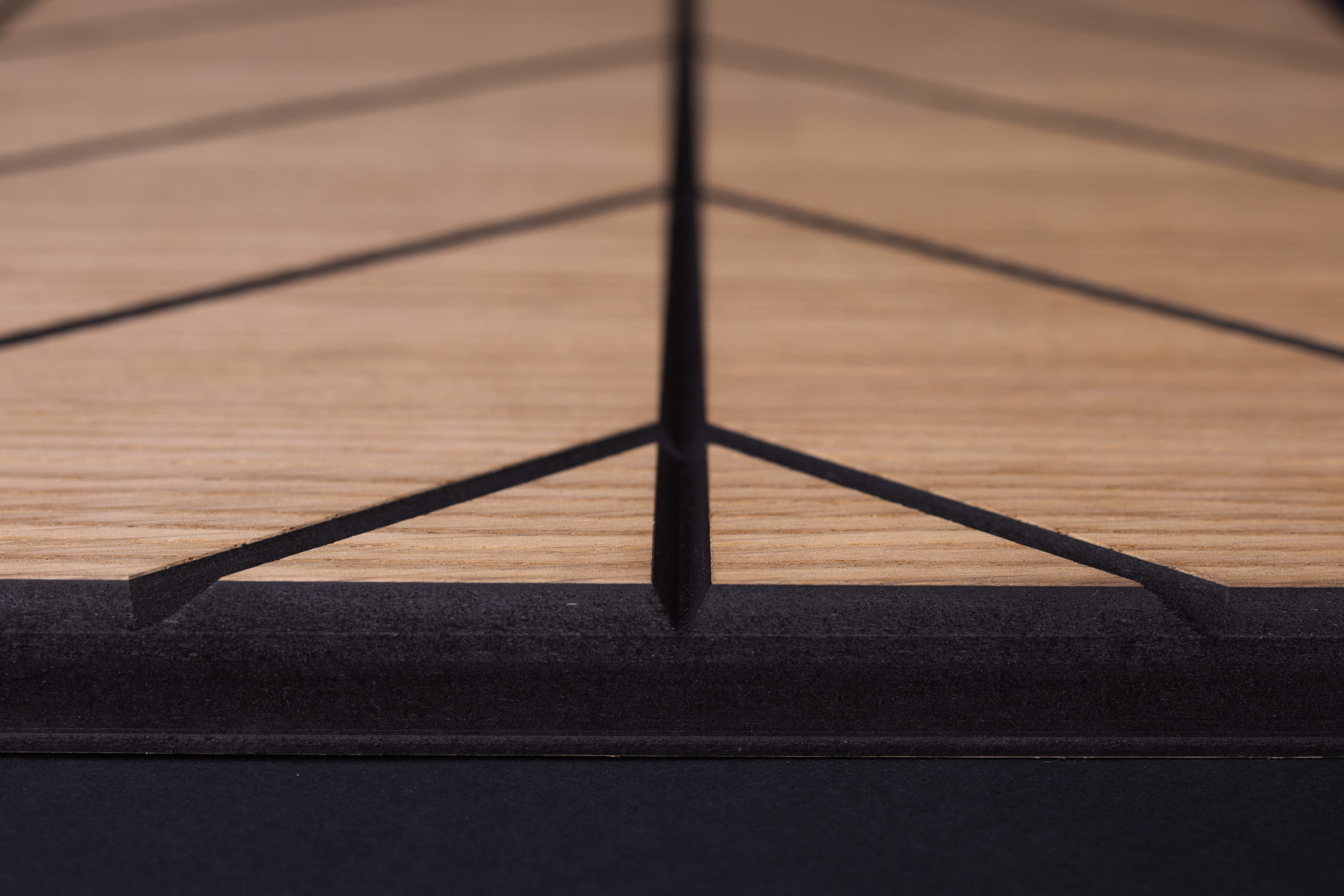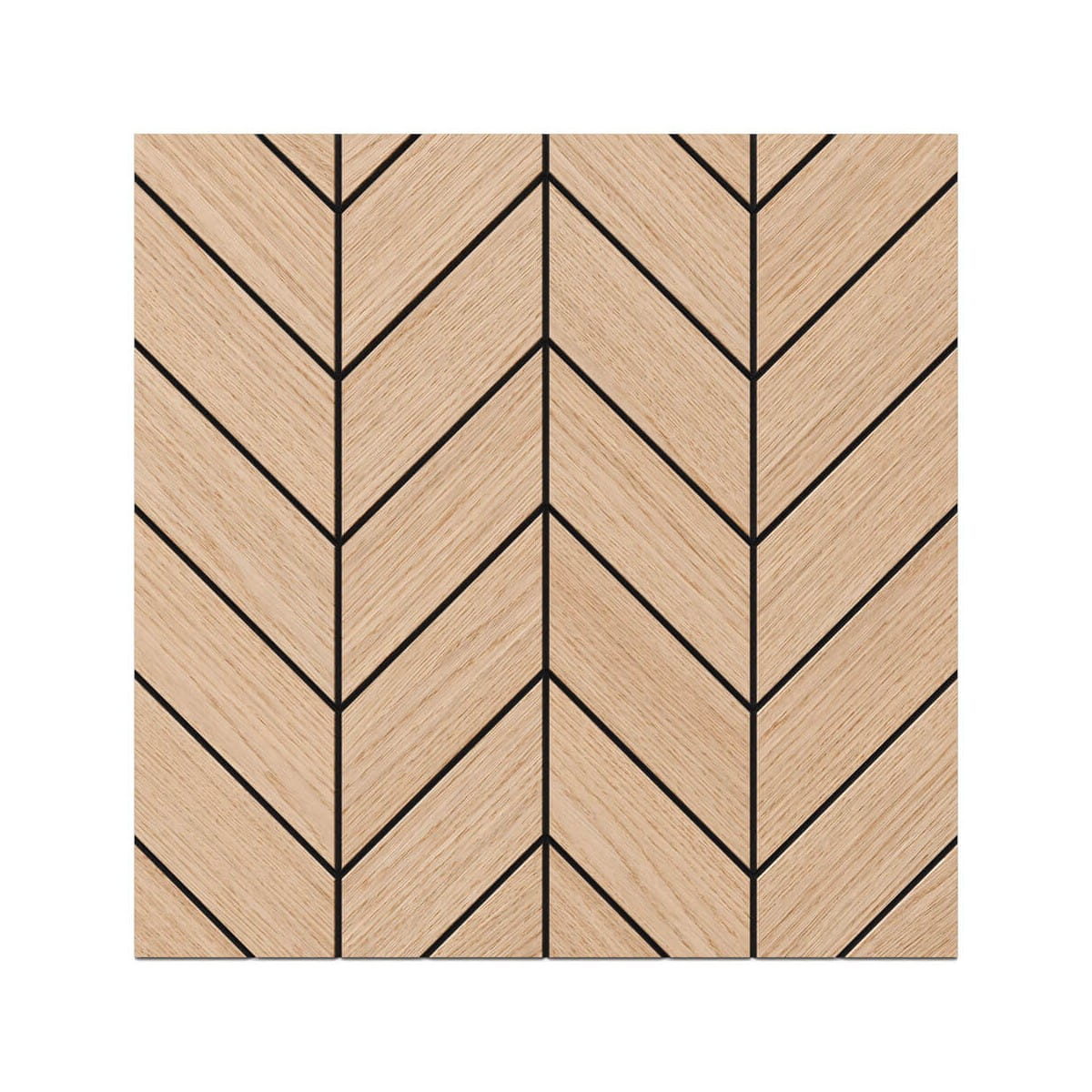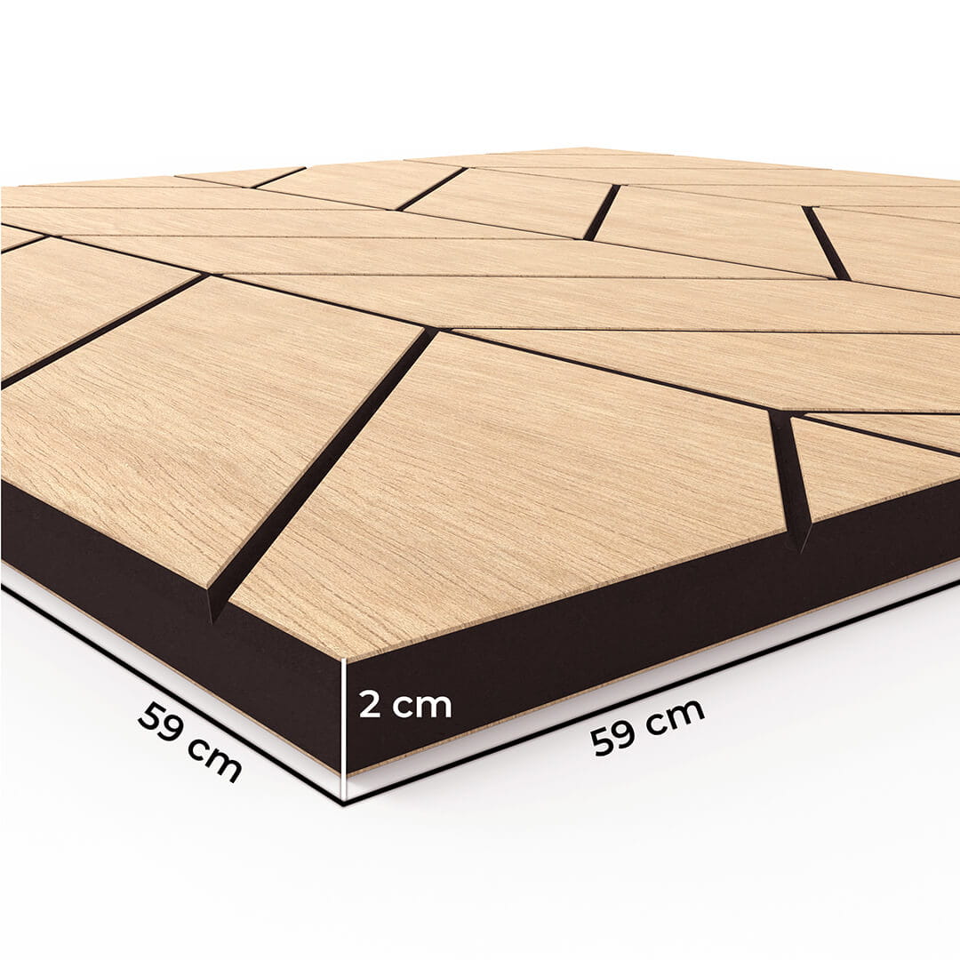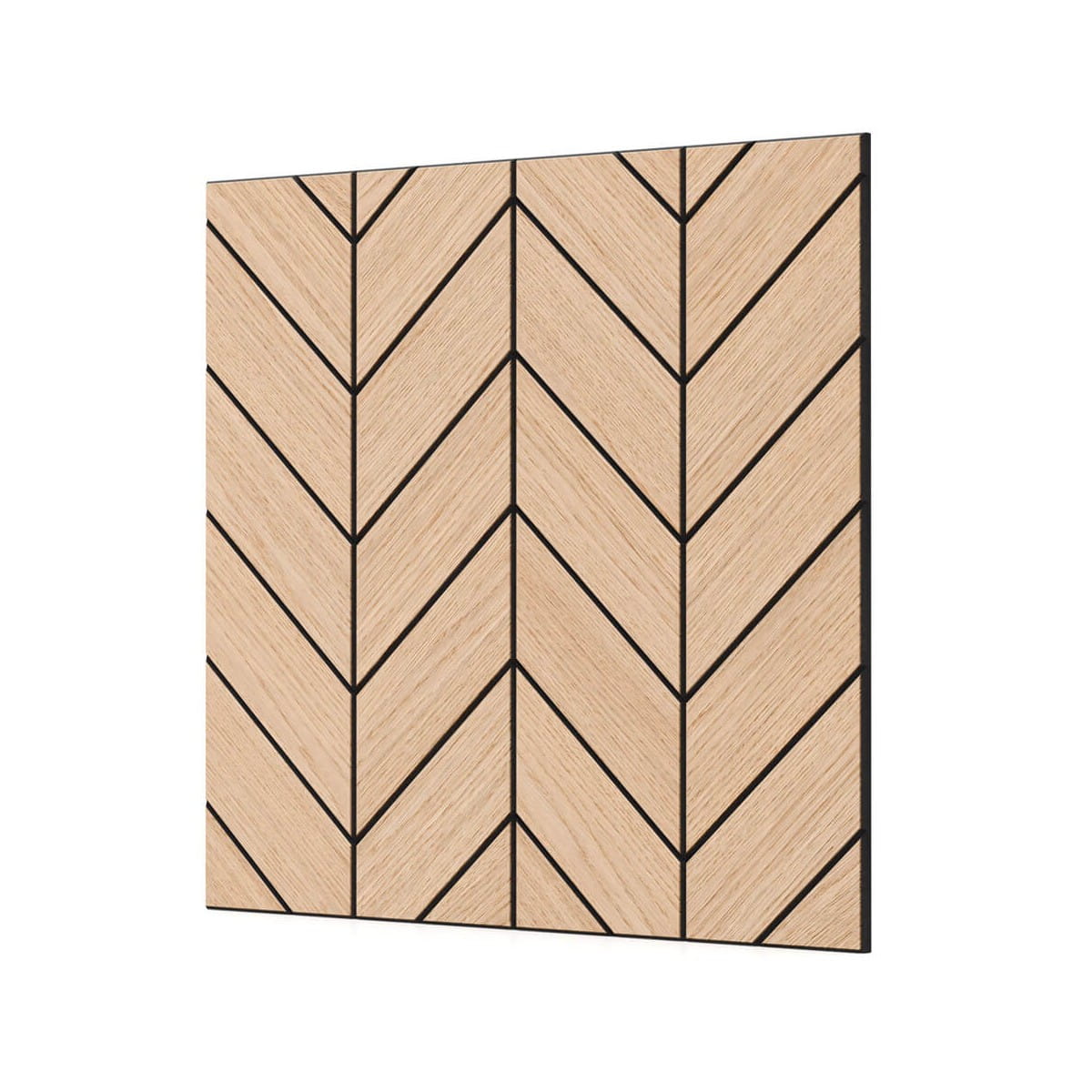 - Kwadratowy panel o wymiarze 50x50 cm z frezowanym wzorem jodełki.