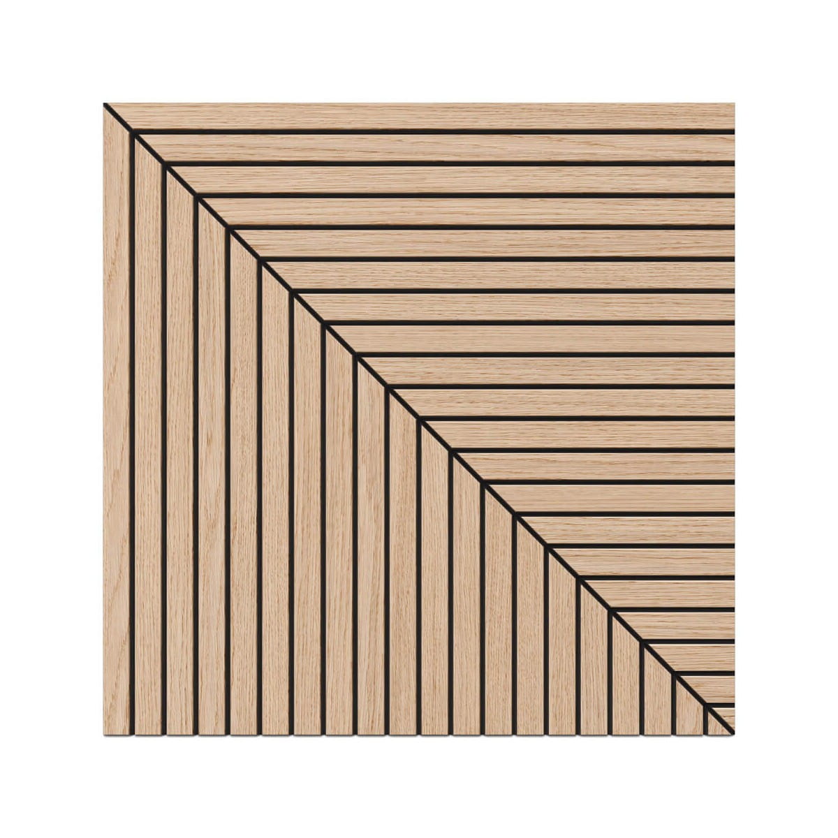 Kwadratowy panel frezowany Ritmo LEO to nowoczesny element dekoracyjny wykonany z lameli o wymiarach 50x50 cm, wykonany z czarnej płyty MDF barwionej w masie, pokryty fornirem dębowym w stanie surowym (do olejowania). Panel łączy efektowny wygląd z funkcją poprawy akustyki wnętrza.
