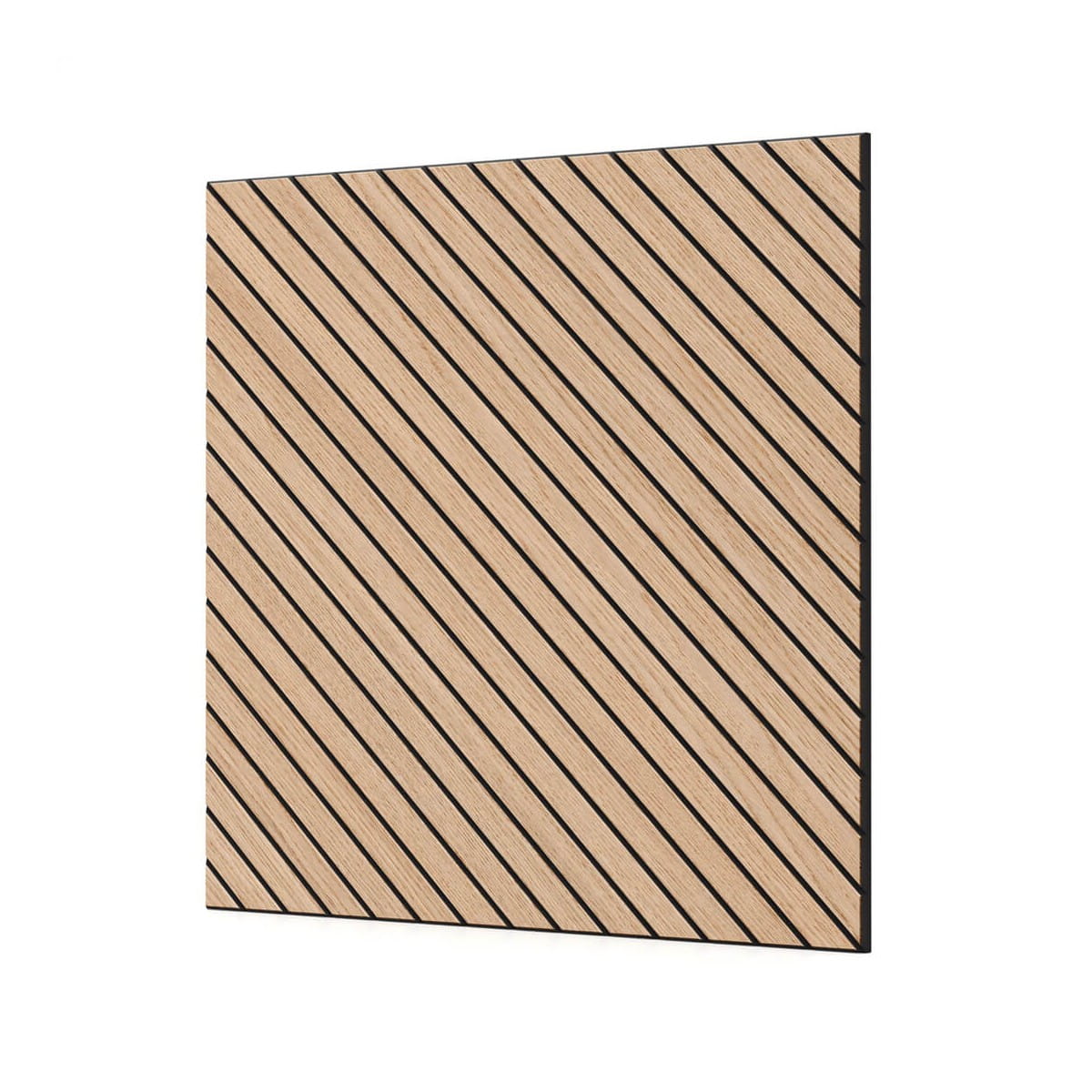 Kwadratowy panel frezowany Zenit LEO to nowoczesny element dekoracyjny wykonany z lameli o wymiarach 50x50 cm, wykonany z czarnej płyty MDF barwionej w masie, pokryty fornirem dębowym w stanie surowym (do olejowania). Panel łączy efektowny wygląd z funkcją poprawy akustyki wnętrza.