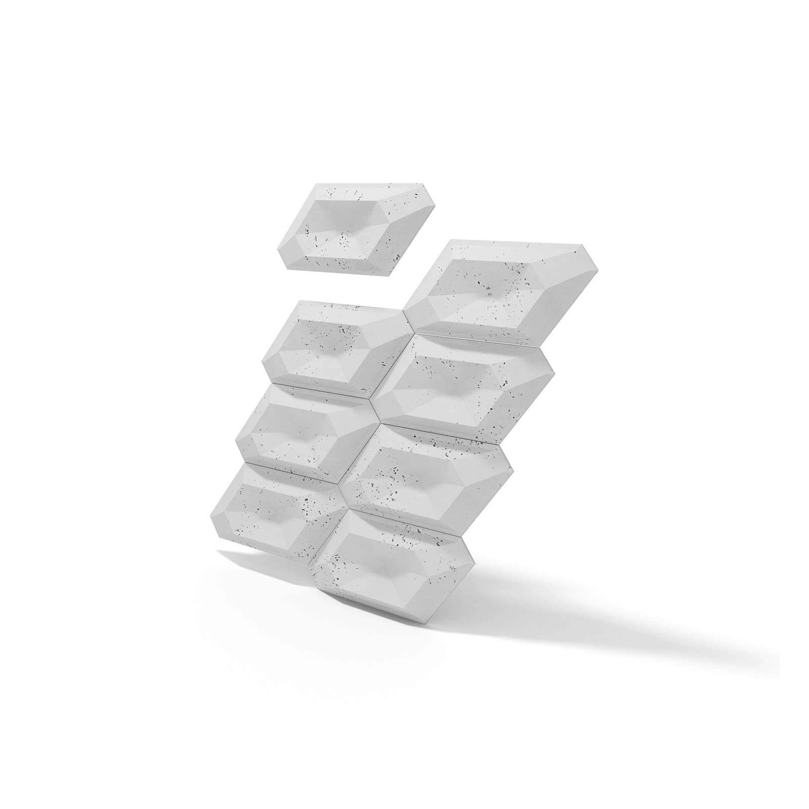 - Panel Ścienny 3D Beton PB02 z betonu architektonicznego oferuje unikatowy design w formie diamentu, idealny dla tych, którzy cenią sobie oryginalność i nowoczesność w aranżacji wnętrz.