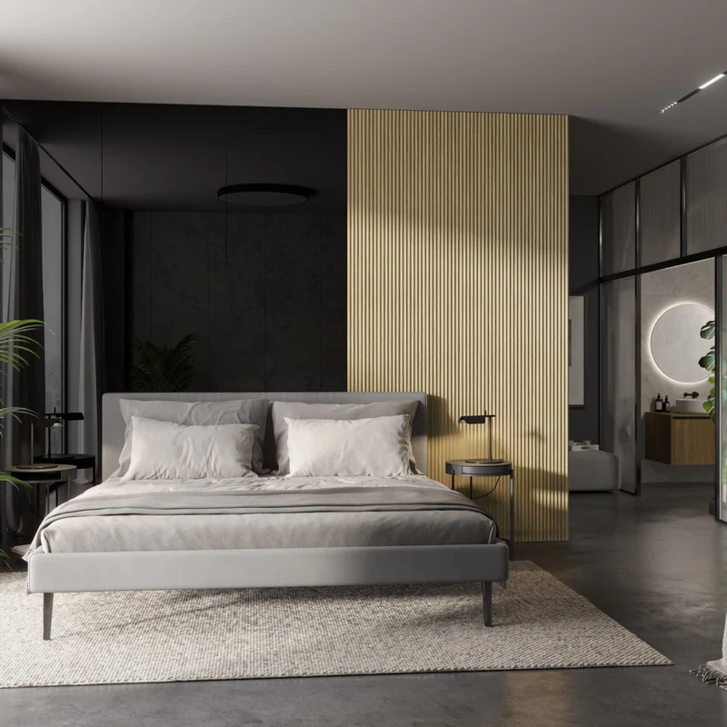 - Ukryte łączenia paneli – po montażu mikrolamele tworzą spójną, elegancką i rytmiczną powierzchnię.